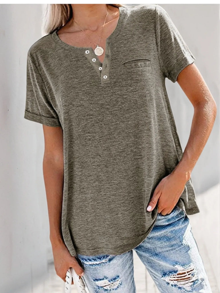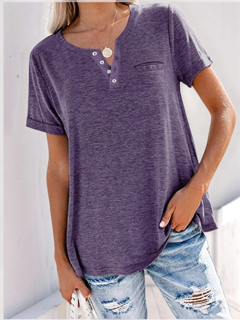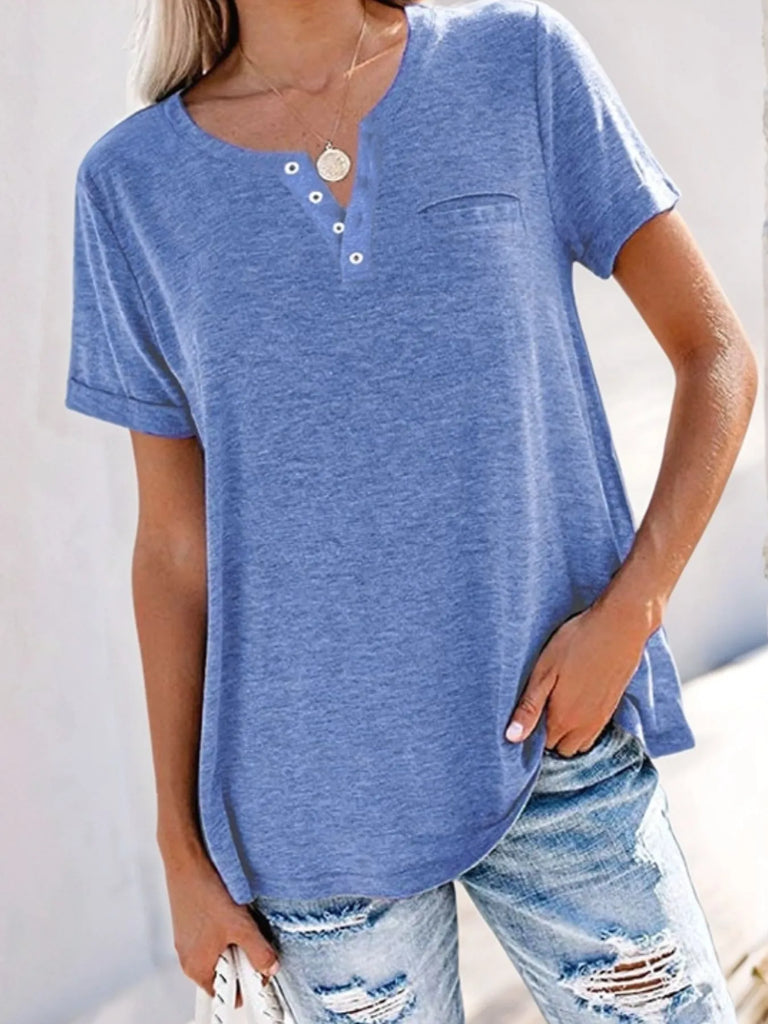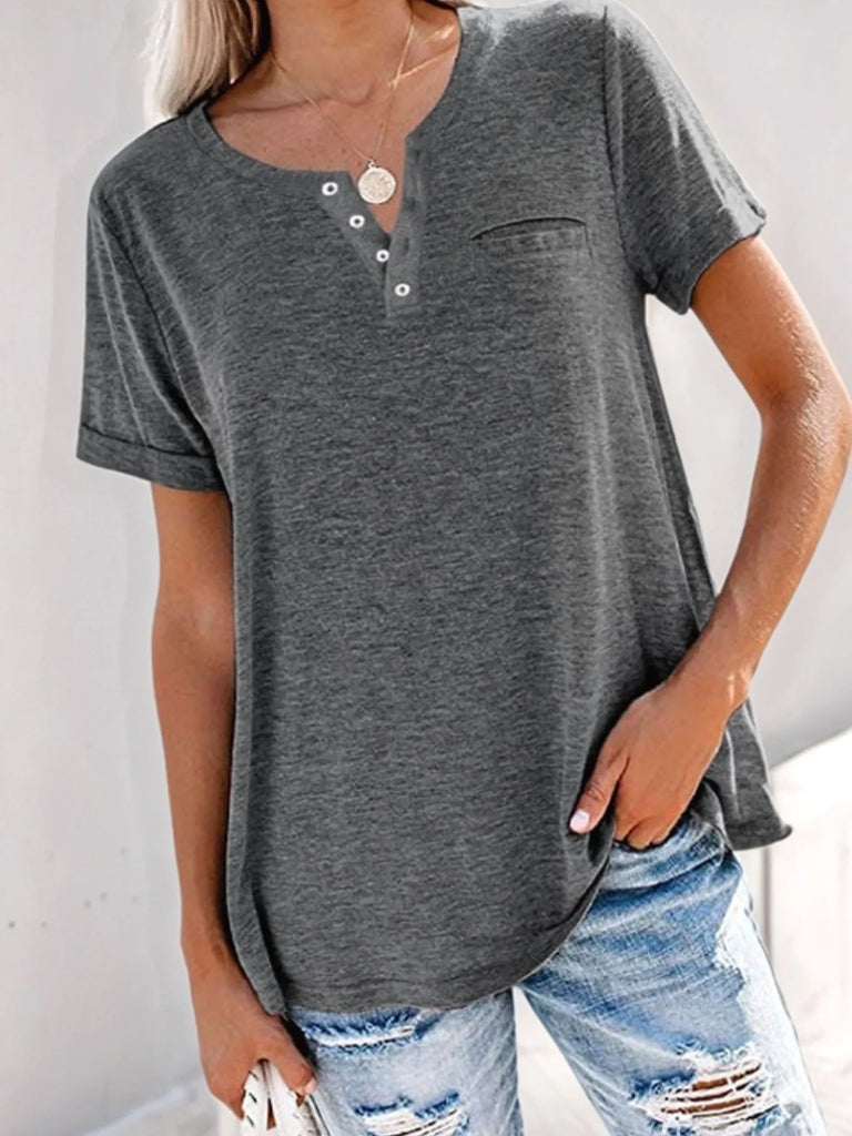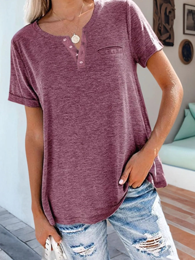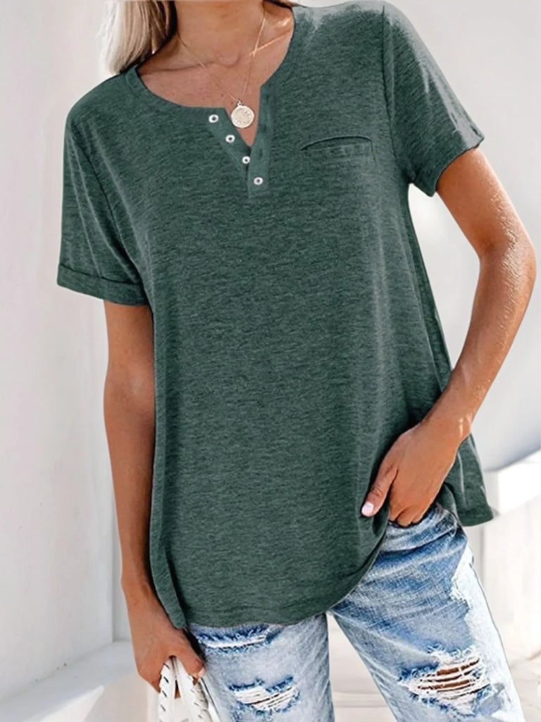 Full Size Notched Short Sleeve T-Shirt Plus Size