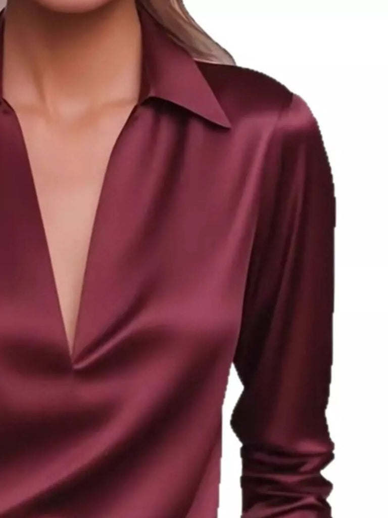 Satin Johnny Collar Long Sleeve Blouse- 4 Colors