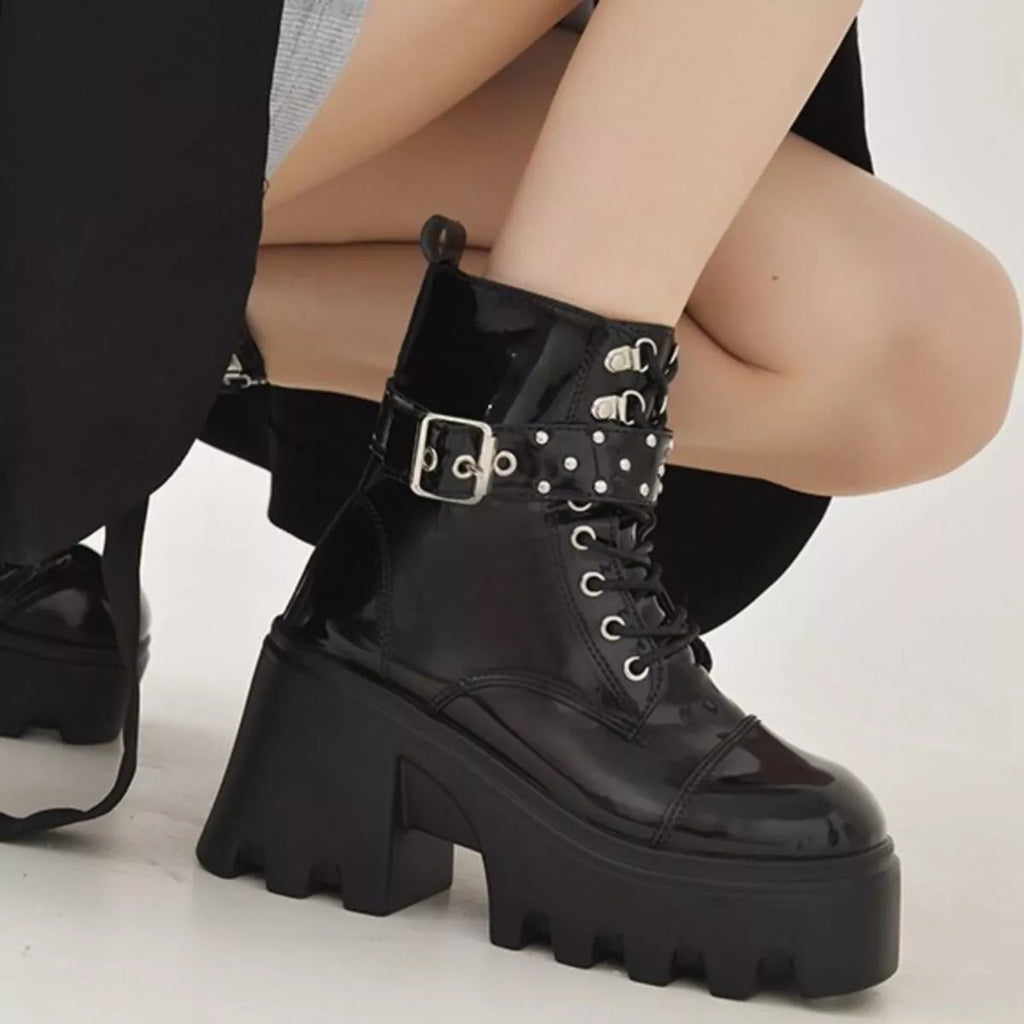 Platform Ankle Boots with Buckle and Studded Detail
