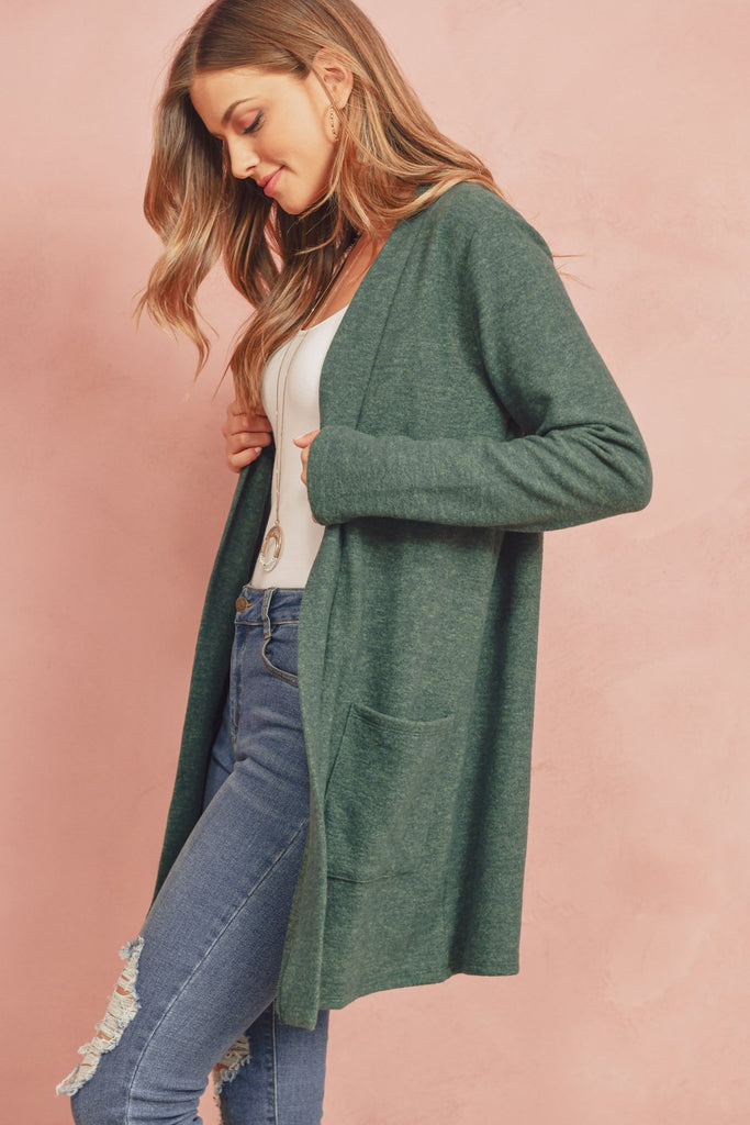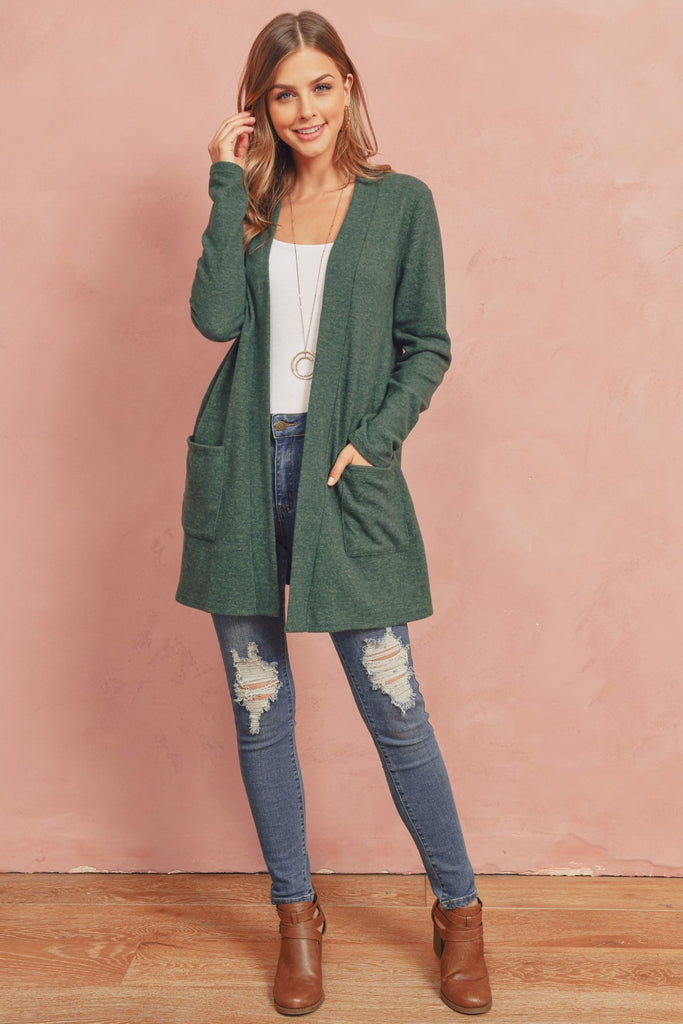 You can never have too many layering pieces, especially when they're as versatile as this long-sleeve cardigan. A solid, easy-to-match-with colors, this cardigan features side patch pockets and an open front to show off your style. Dress it down with a tank top and jeans, or dress it up with a blouse and chinos for the office.