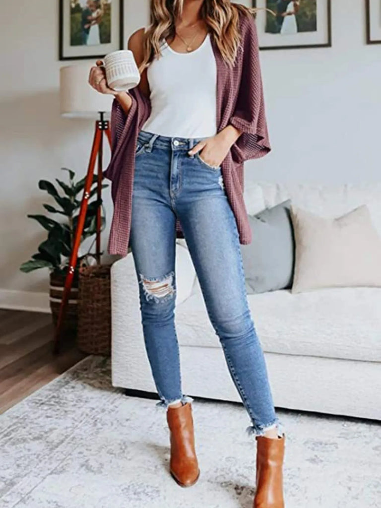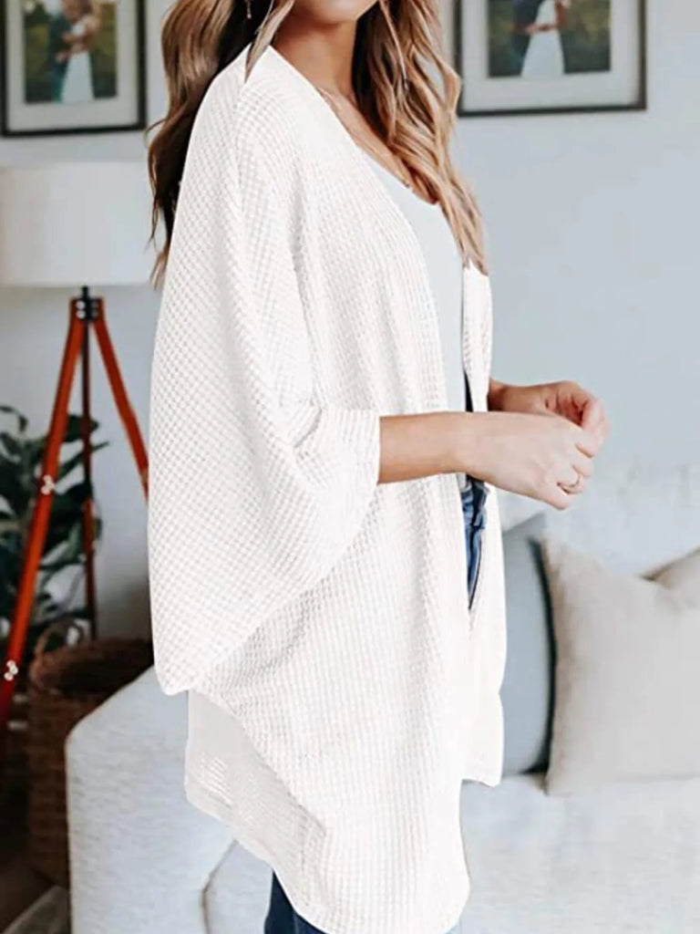 Full Size Open Front Waffle Knit Cardigan Plus Size