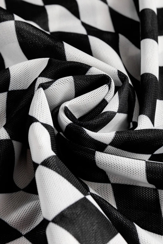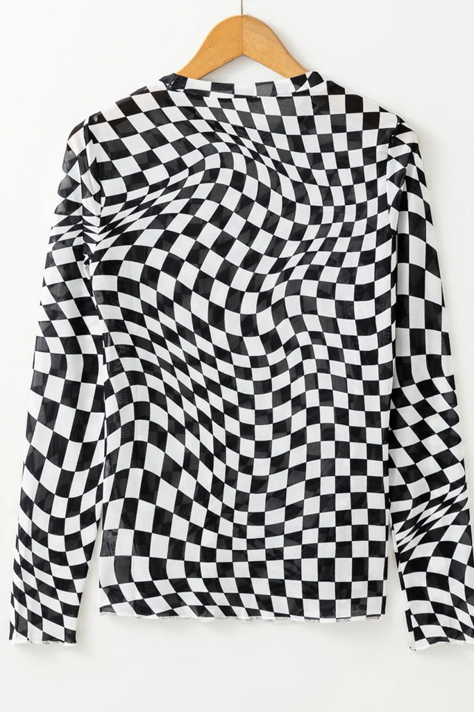 Checkered Mock Neck Long Sleeve Blouse- 3 Colors
