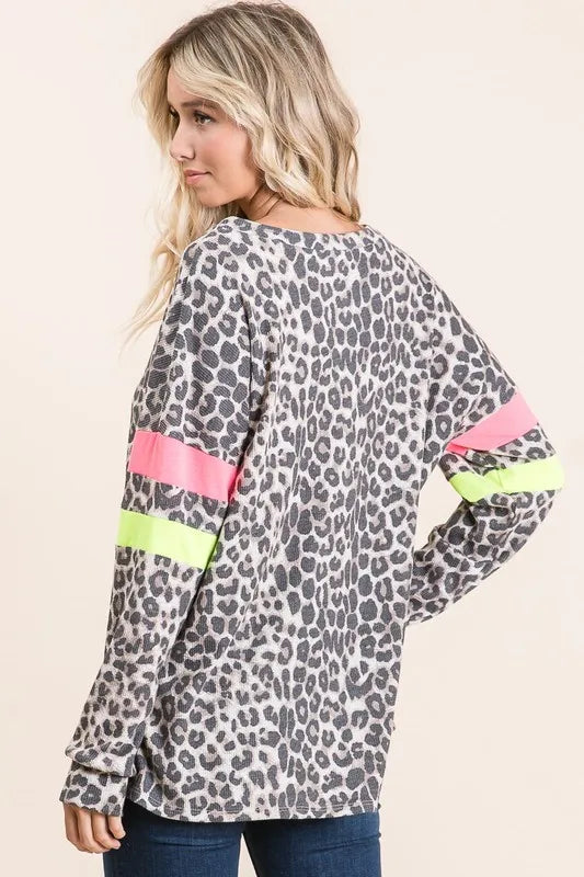 BiBi Leopard Thermal Top with Contrast Color Block