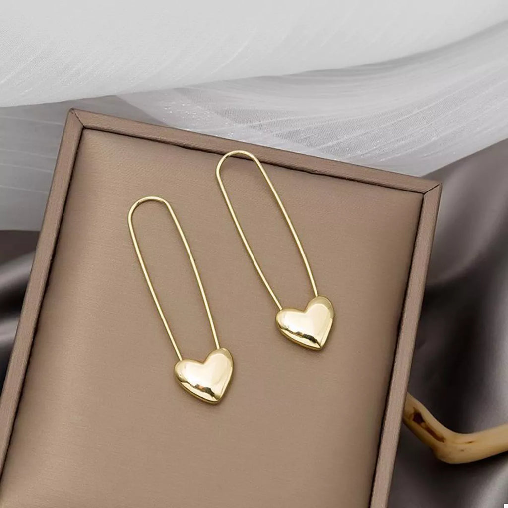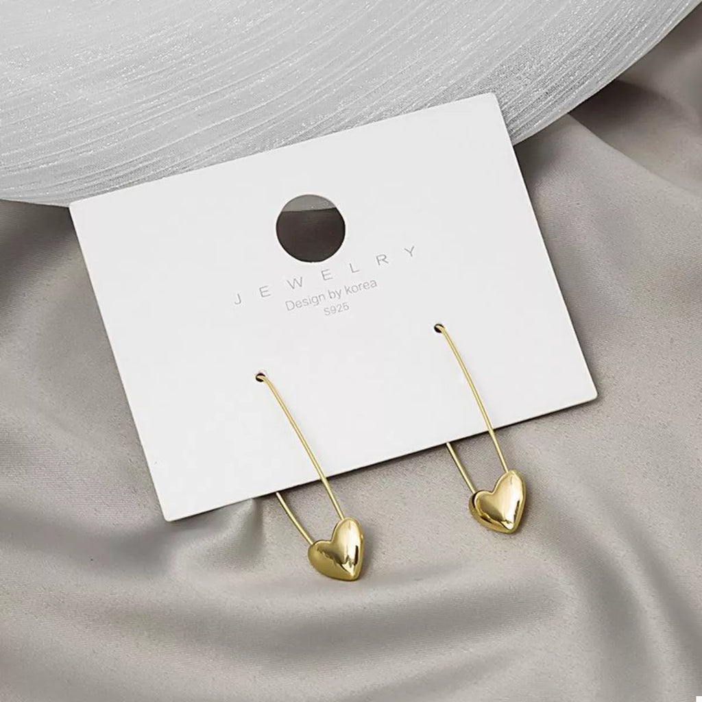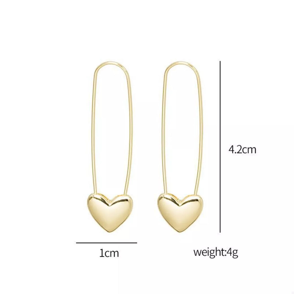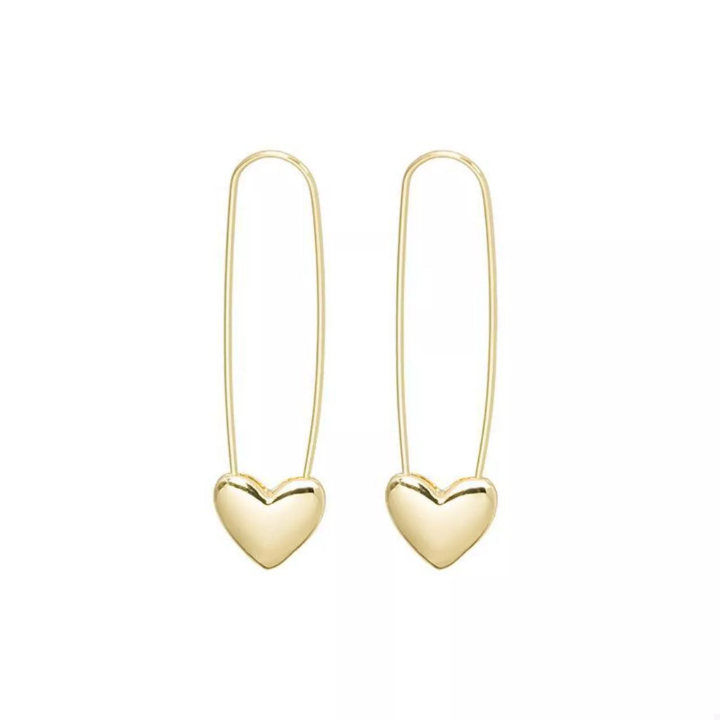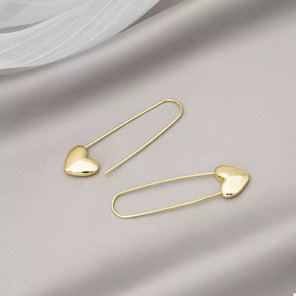 18K Gold-Plated Heart Charm Safety Pin Earrings