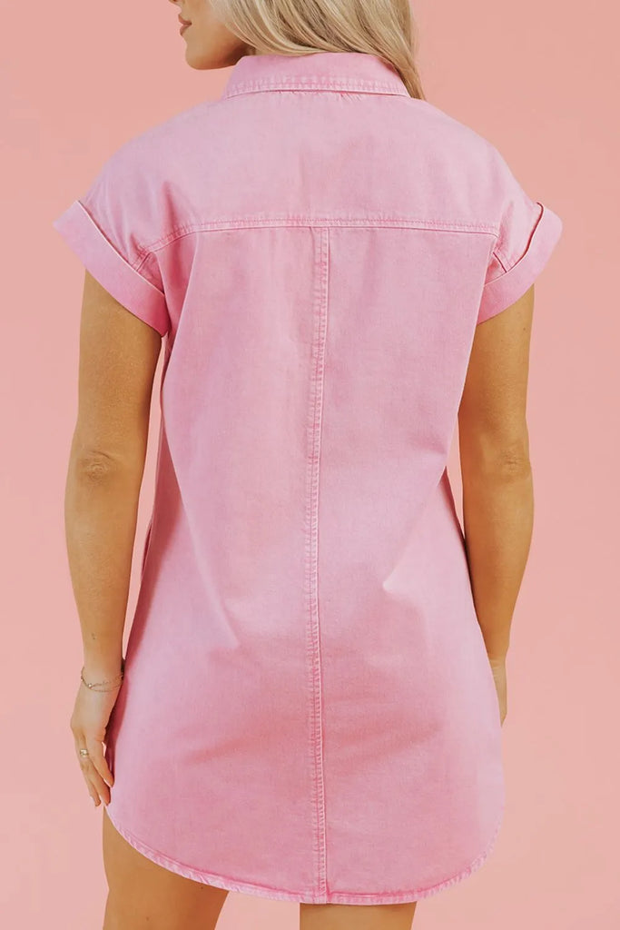 Button-Up Short Sleeve Denim Dress- 2 Colors