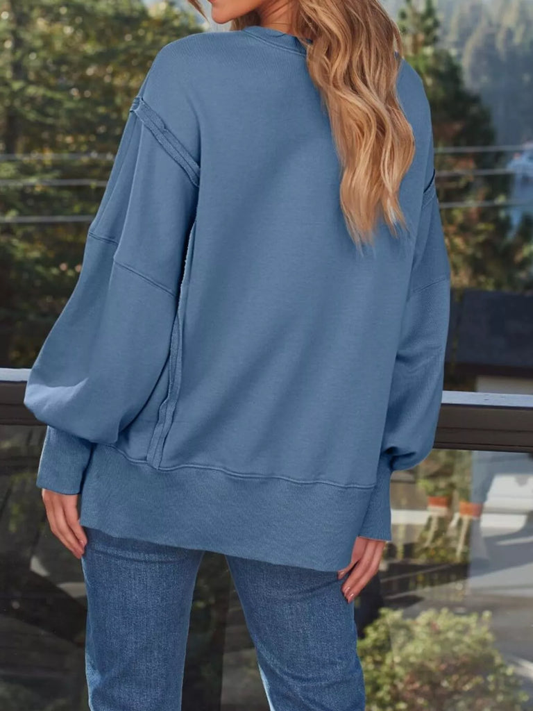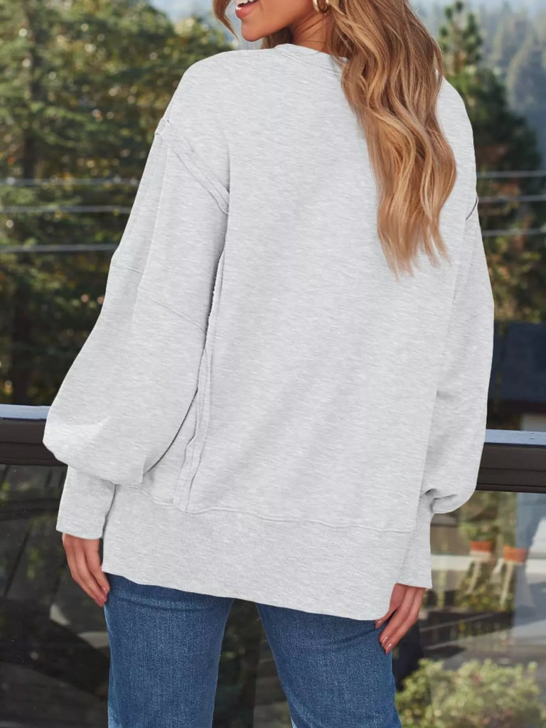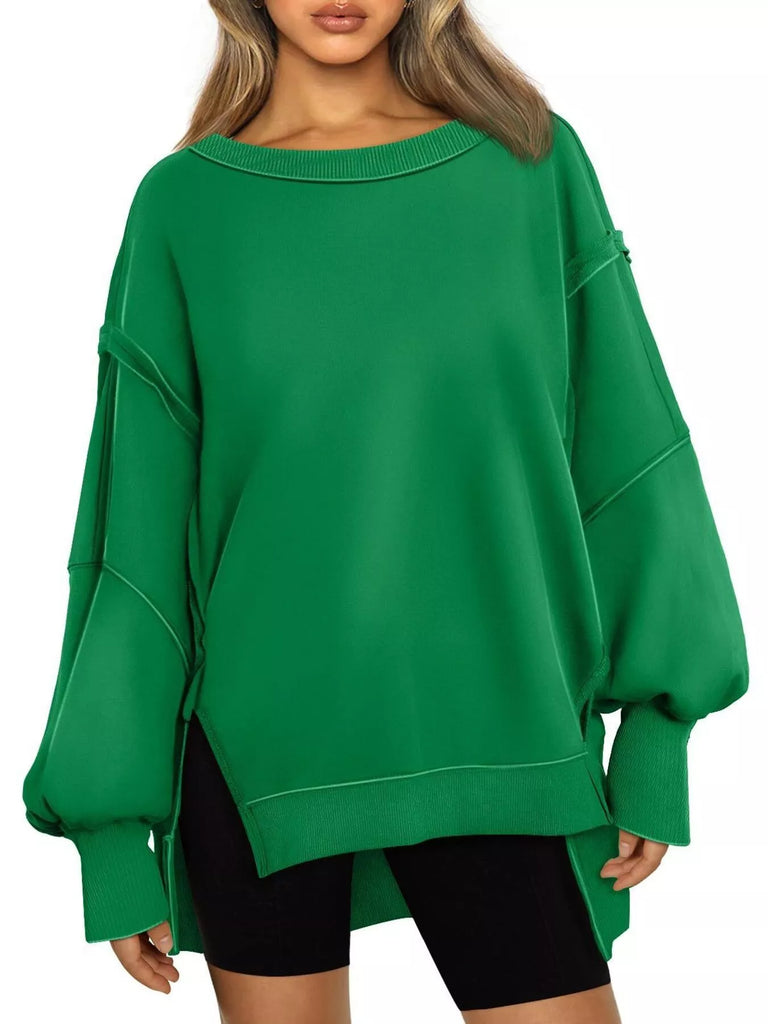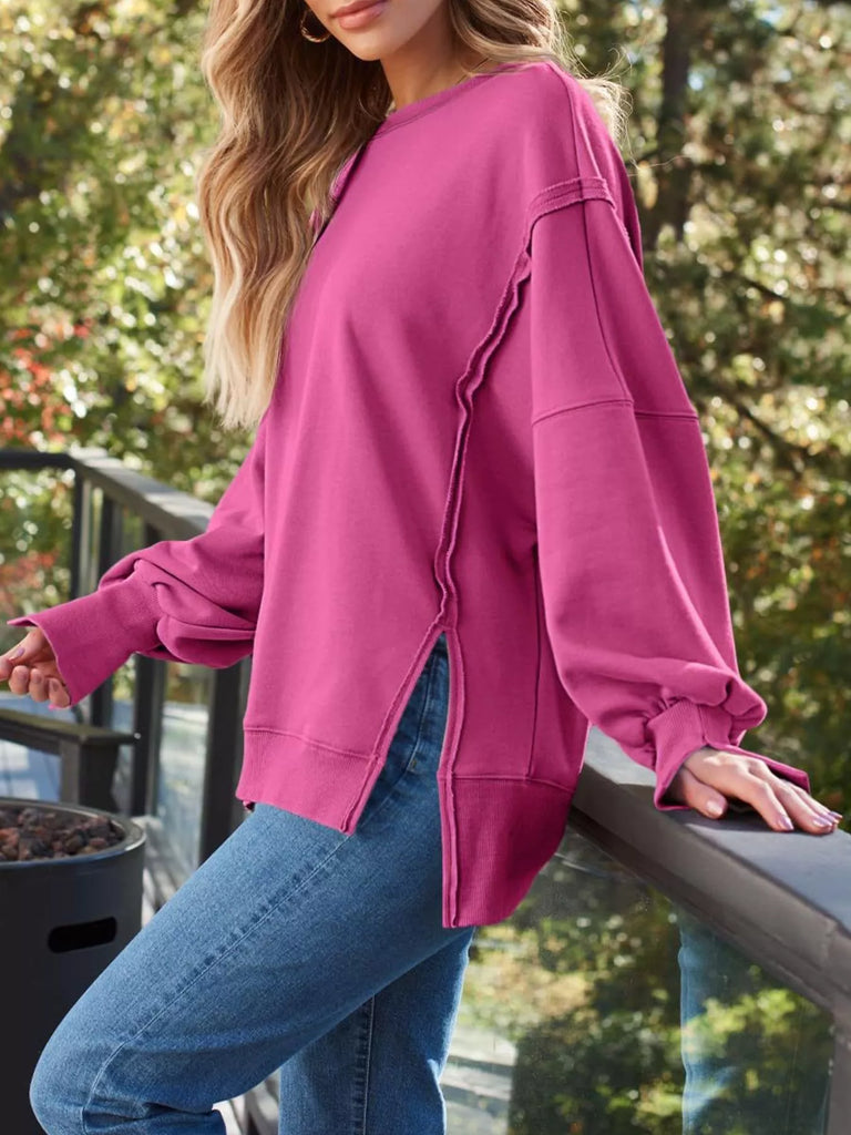 Side Slit Long Sleeve Oversized Sweatshirt