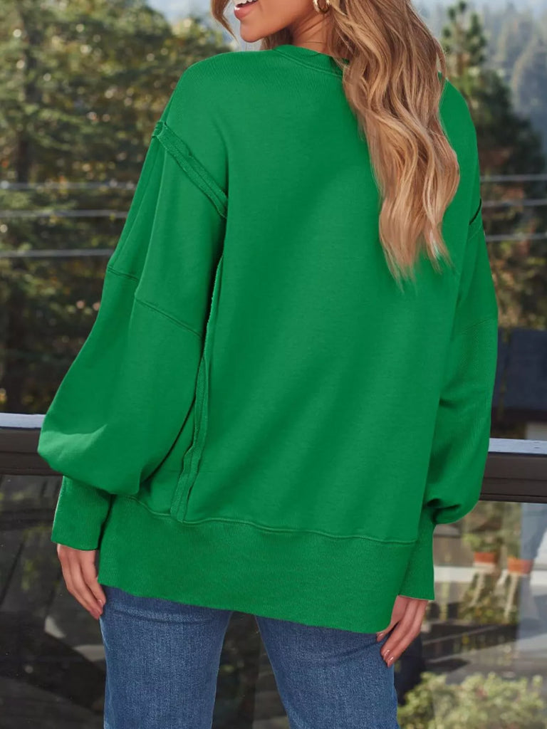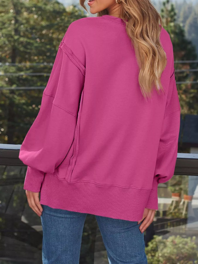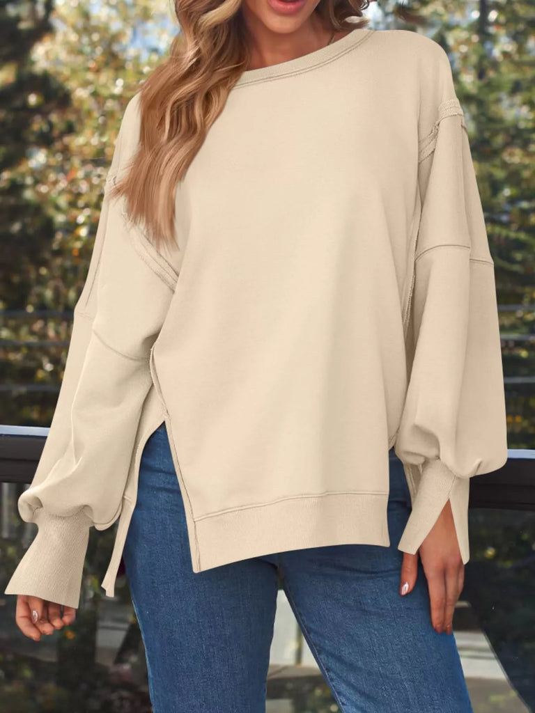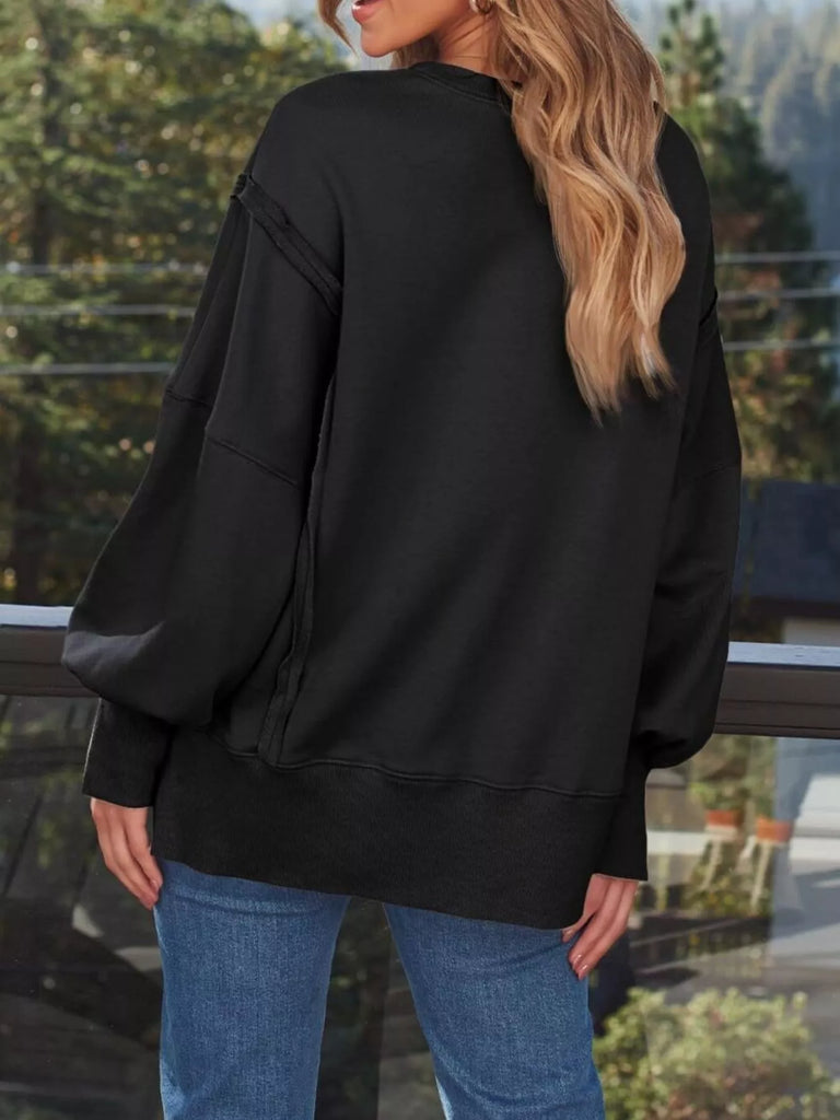 Side Slit Long Sleeve Oversized Sweatshirt