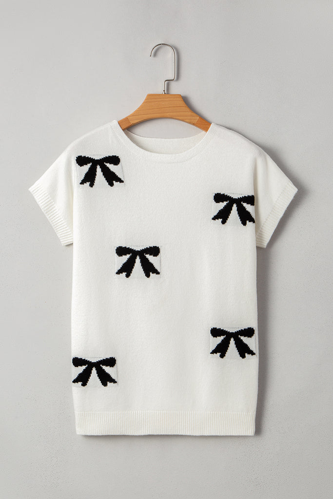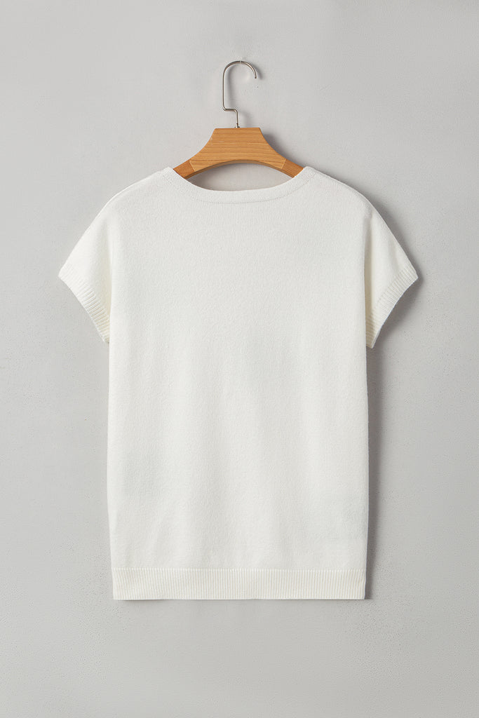 - Crafted with a comfortable round neck and short sleeves, this knit top offers both style and comfort, making it a must-have piece for any fashion-forward wardrobe.