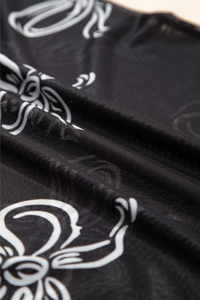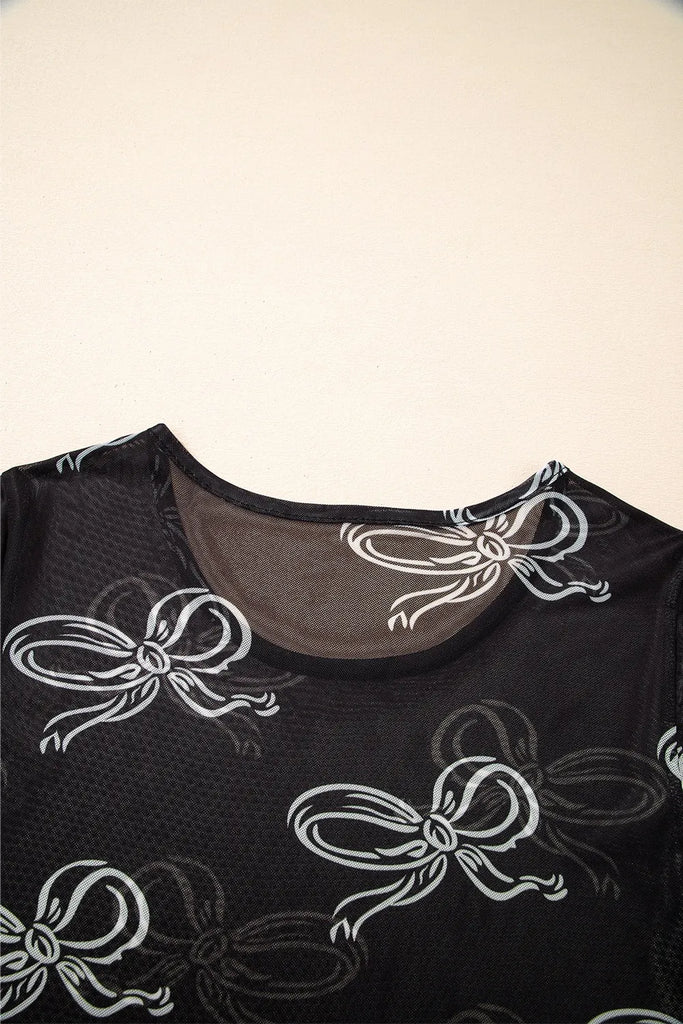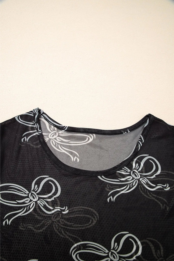 Bow Mesh Round Neck Short Sleeve T-Shirt