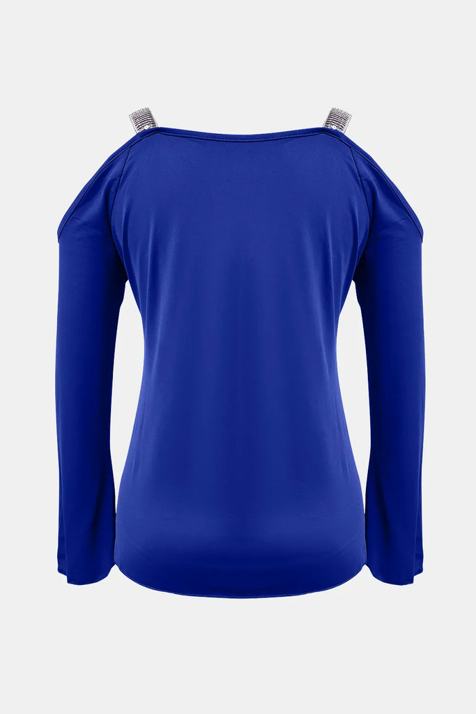 Sequin V-Neck Cold Shoulder Top- 3 Colors