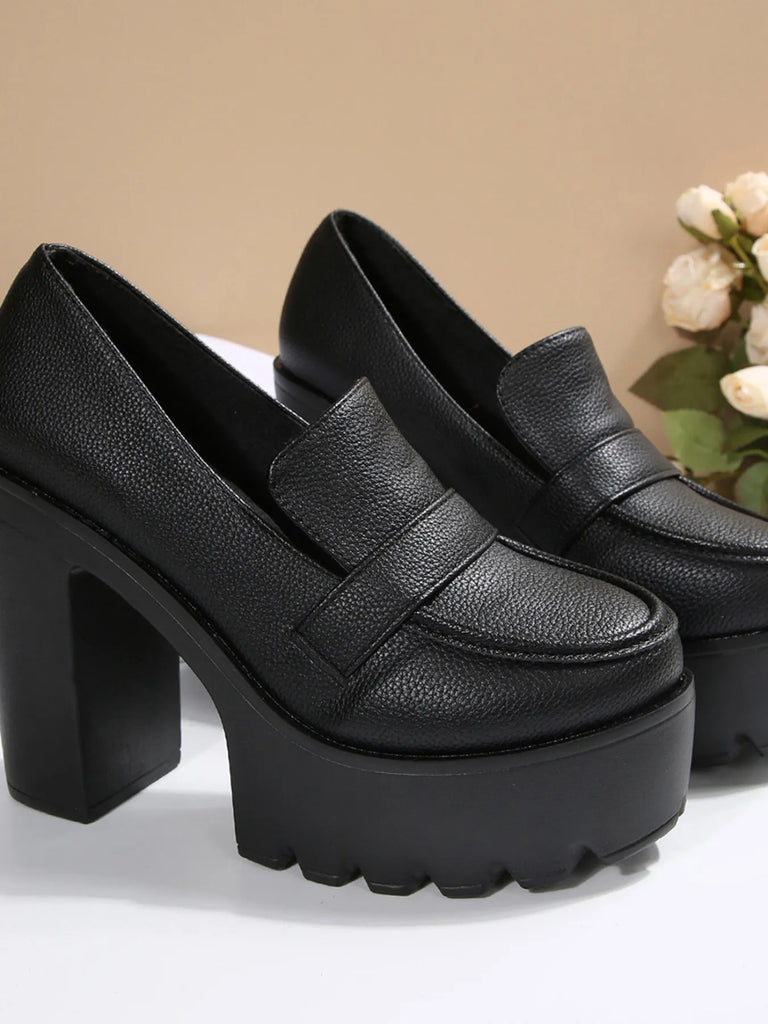 Round Toe Platform Block Heels Pumps- 4 Colors