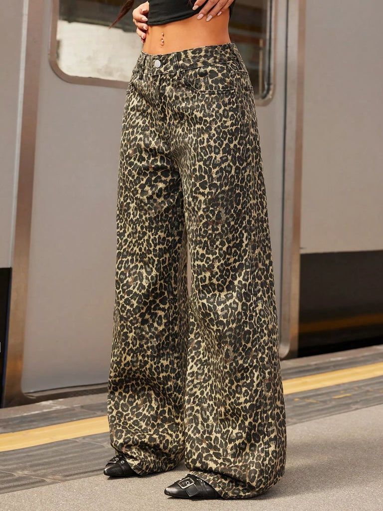 Leopard Print Wide Leg Jeans