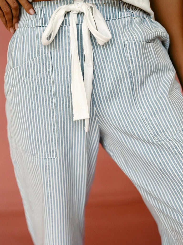 Stripe Mid Rise Drawstring Waist Jeans