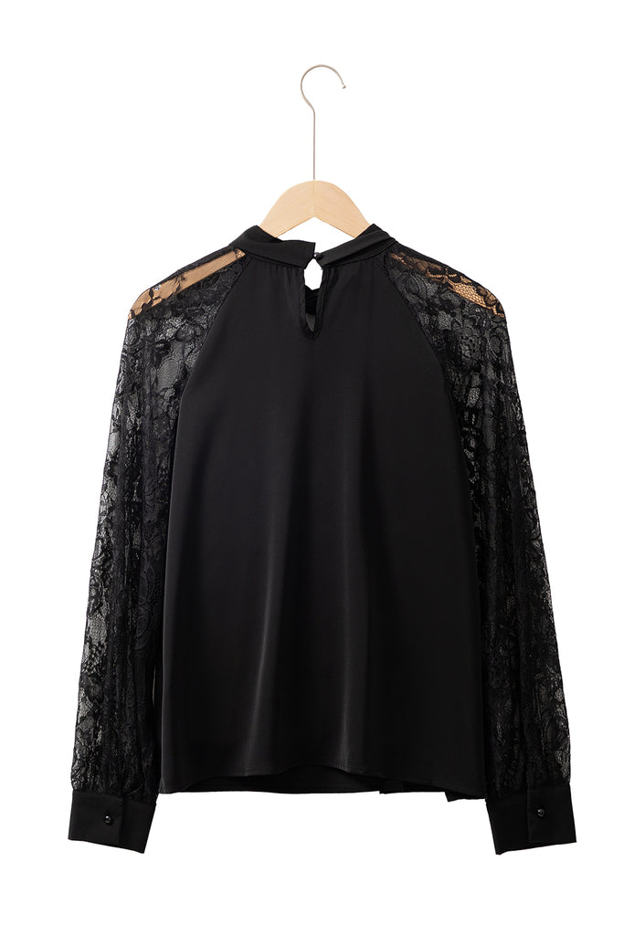 Black Keyhole Lace Splicing Raglan Sleeve Blouse