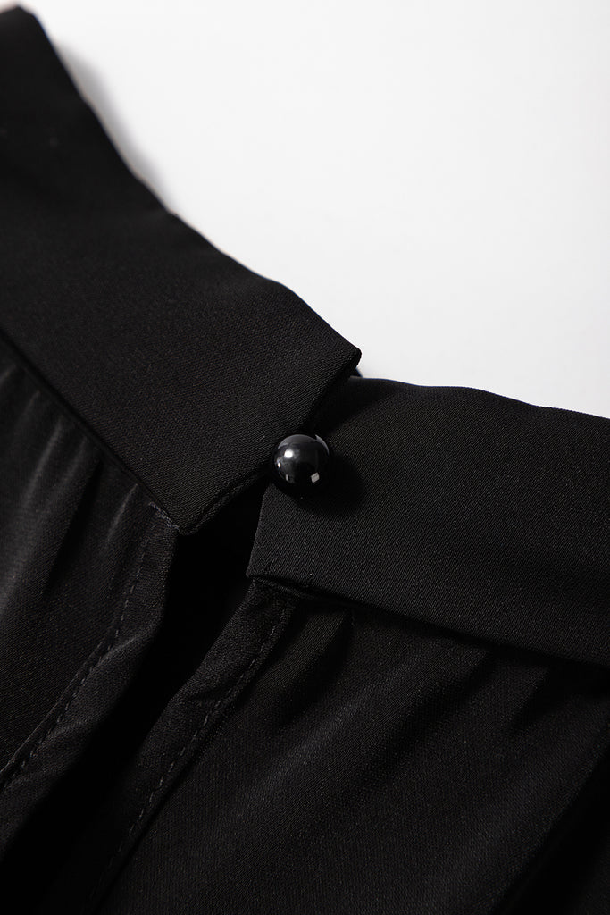 • Made from high-quality materials, the solid black color of this blouse ensures versatility and effortless pairing with different bottoms for a polished outfit.