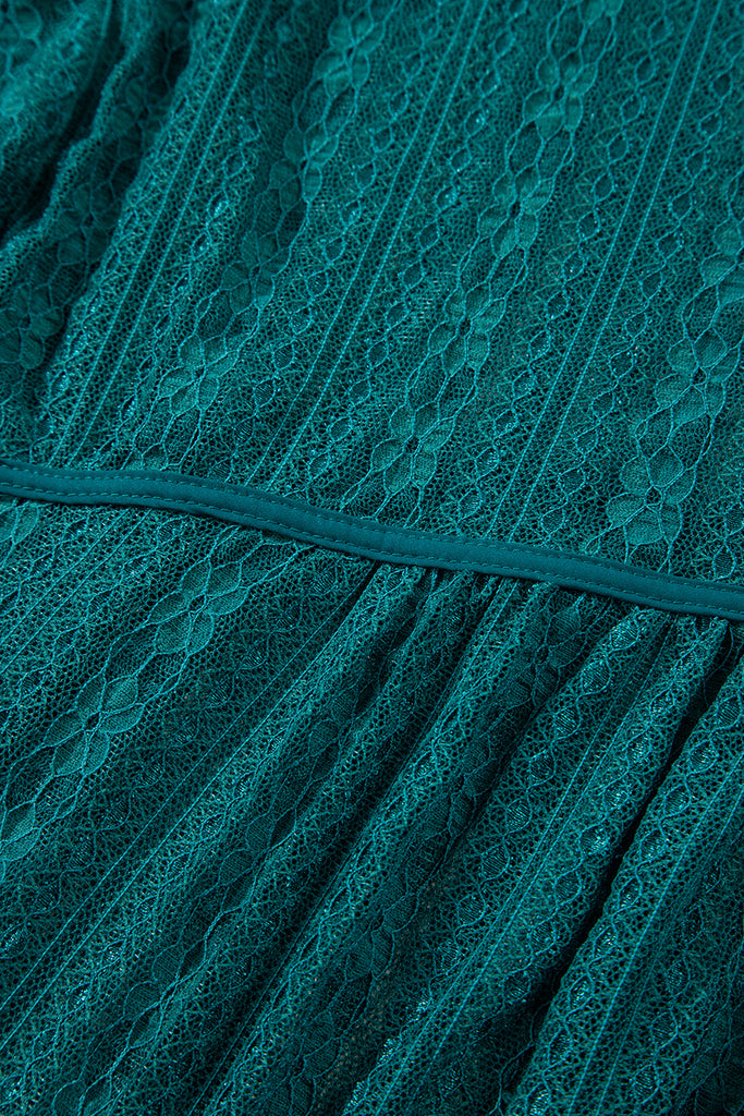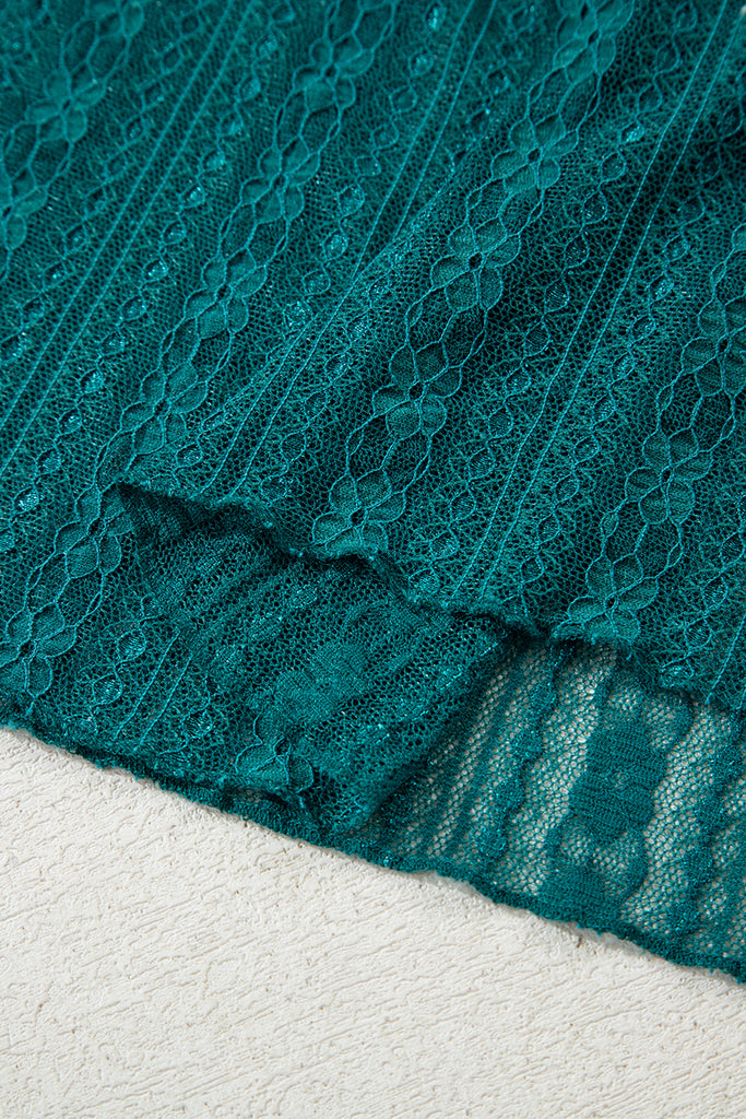 Evergreen Sheer Lace Balloon Sleeve Babydoll Blouse