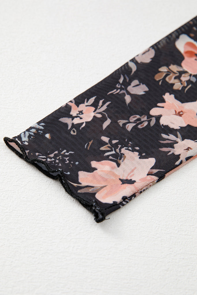 Black Floral Long Sleeve Slim Fit Mesh Top