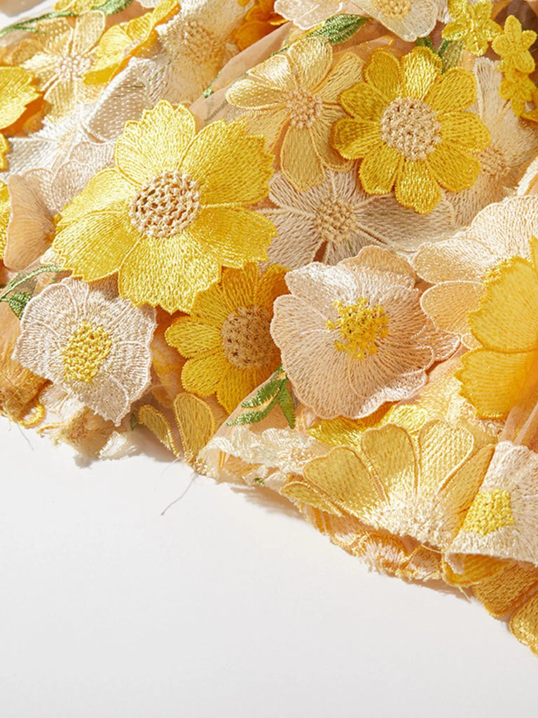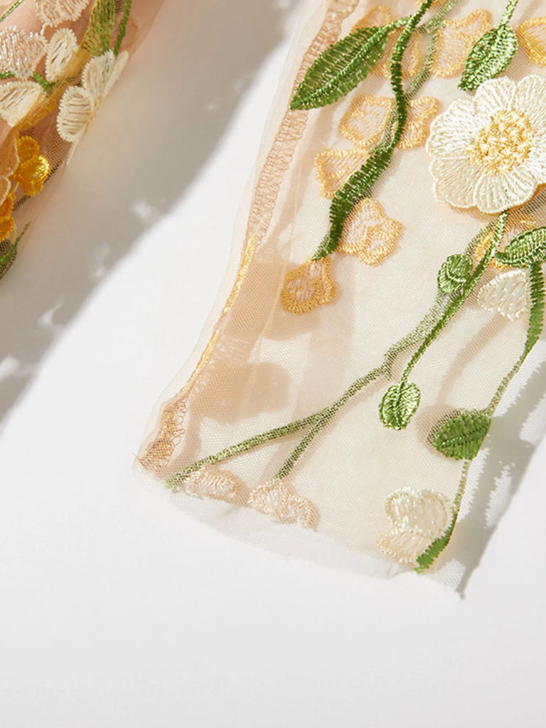 Floral Embroidered Mesh Long Sleeve Midi Dress