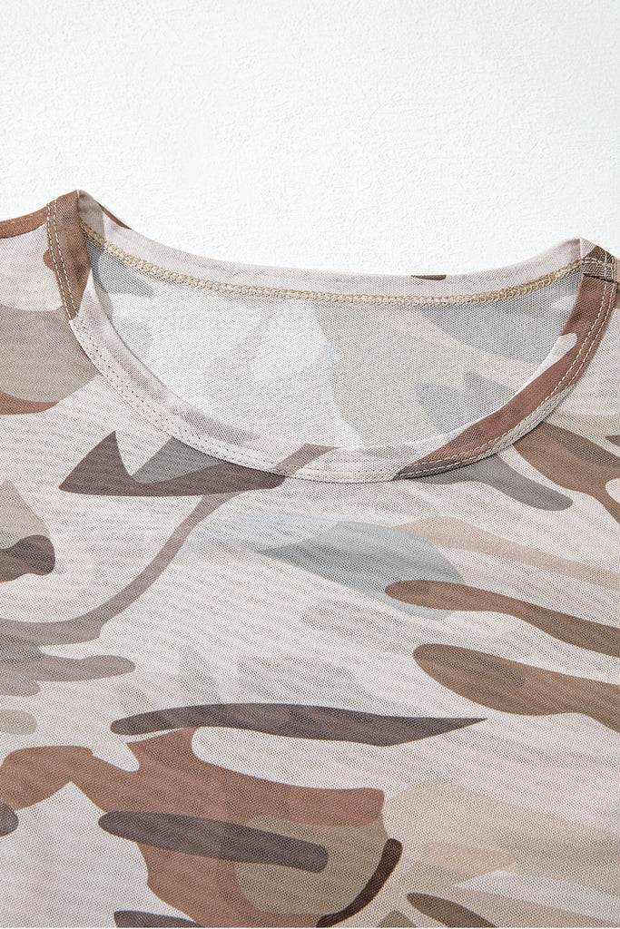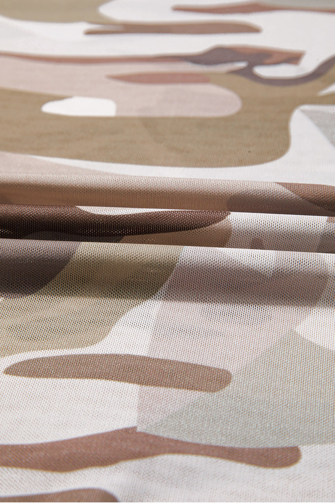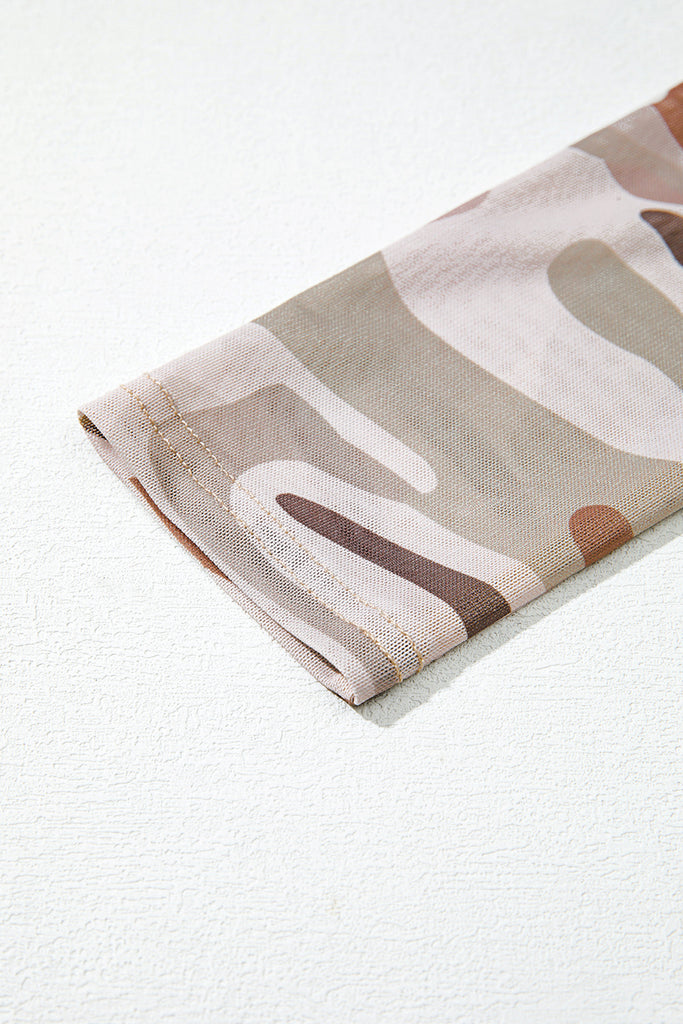 Green Camouflage Print Slim Fit Long Sleeve Top