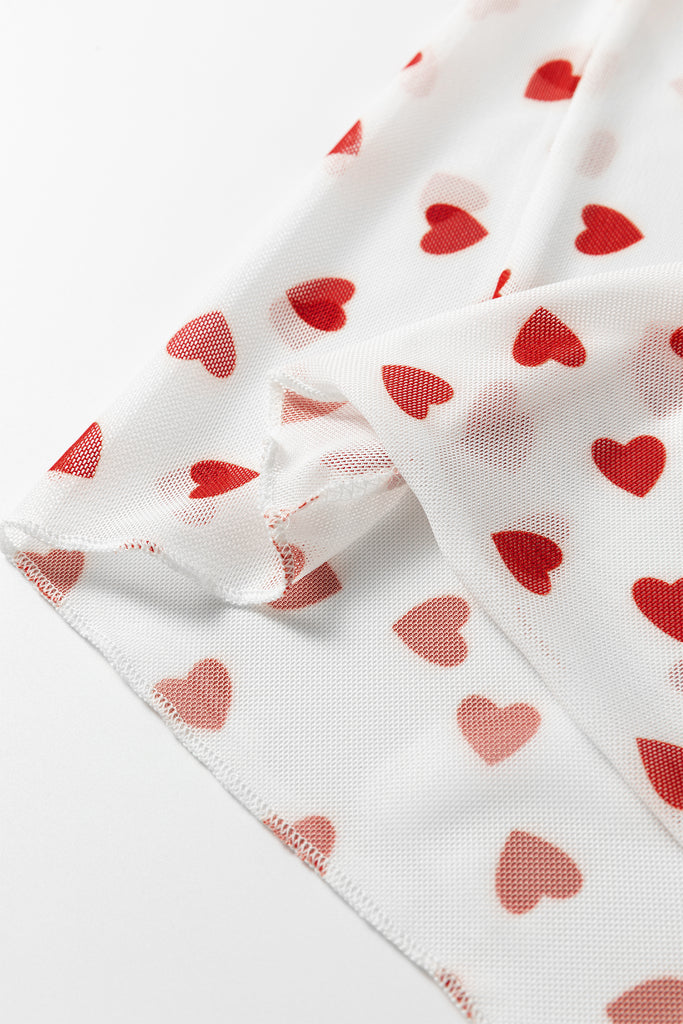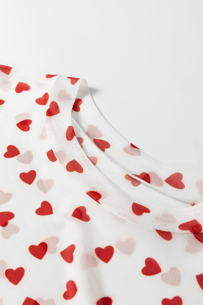 All OverHeart Print Mesh Short Sleeve Top- 2 Colors