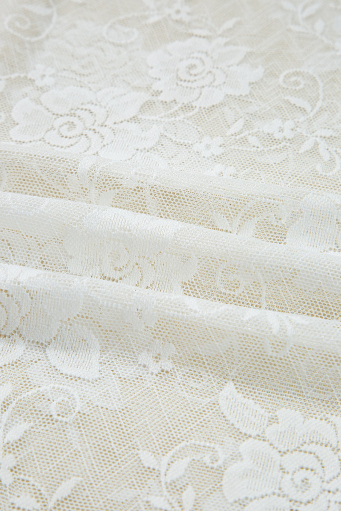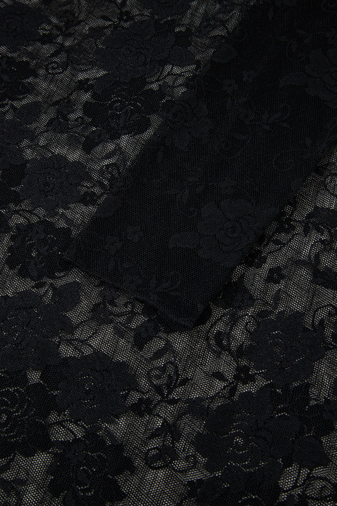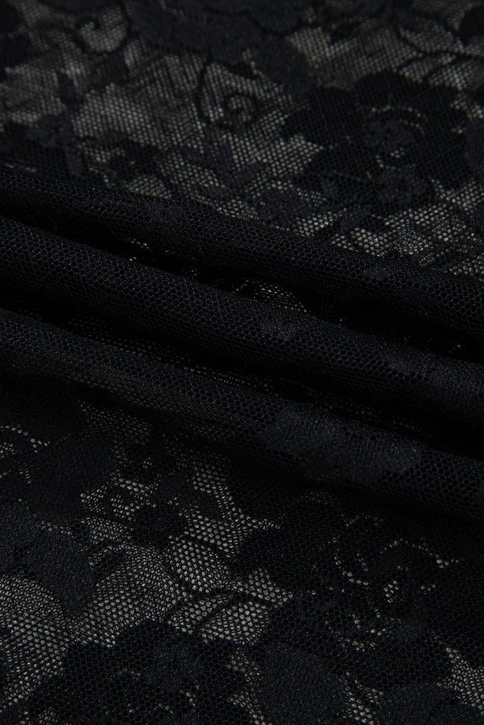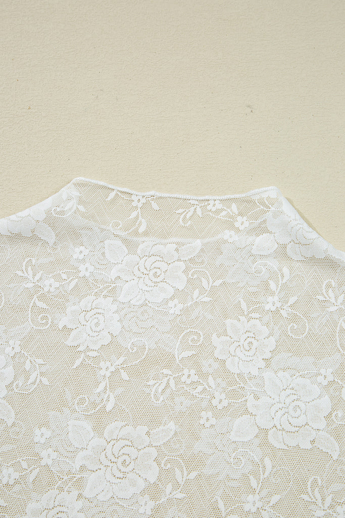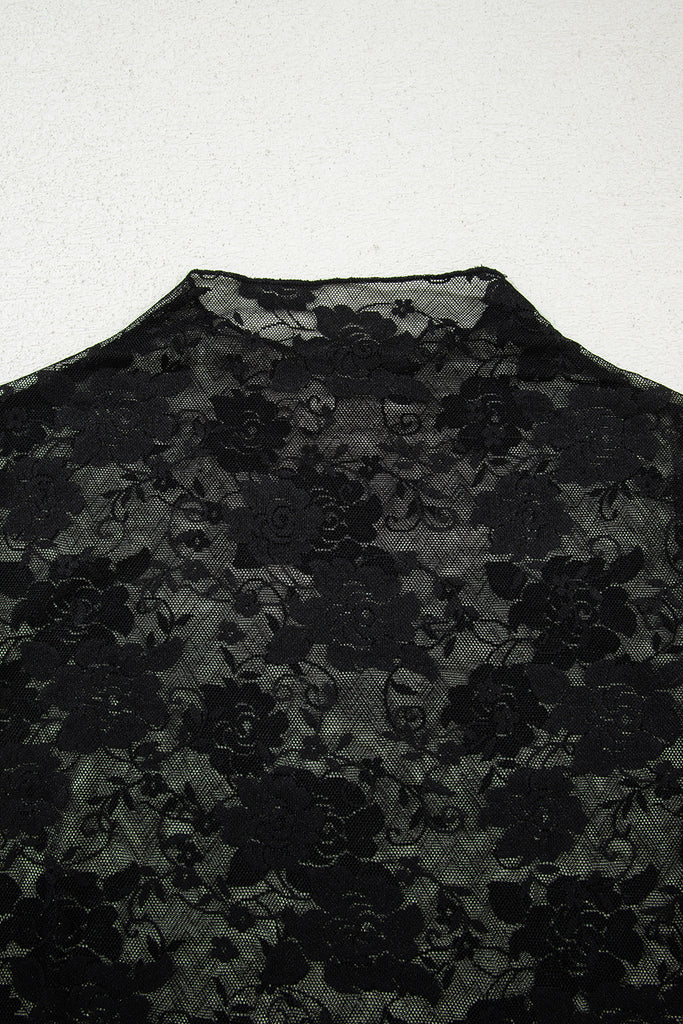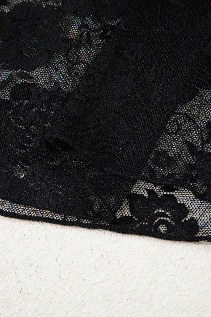 • Embrace elegance in this mesh top, featuring intricate floral lace details that exude femininity.