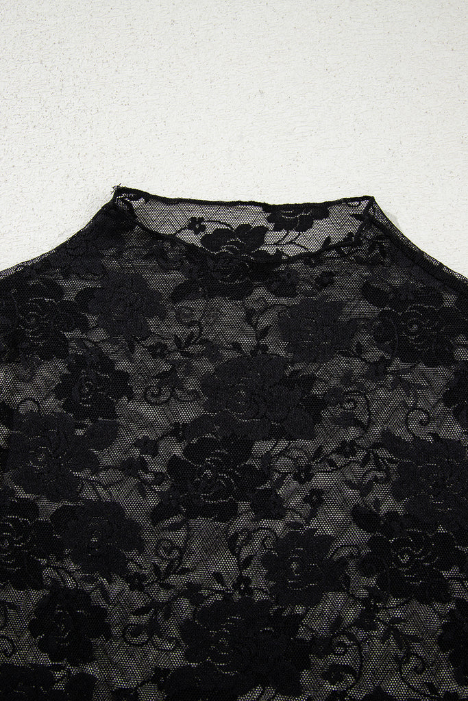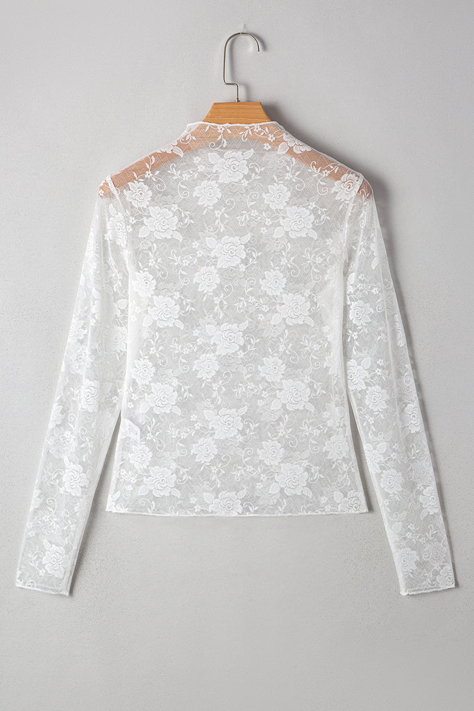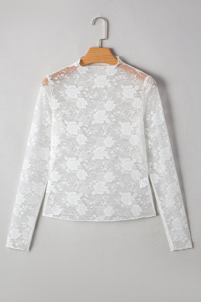 Mock Neck Floral Lace Mesh Long Sleeve Top- 2 Colors