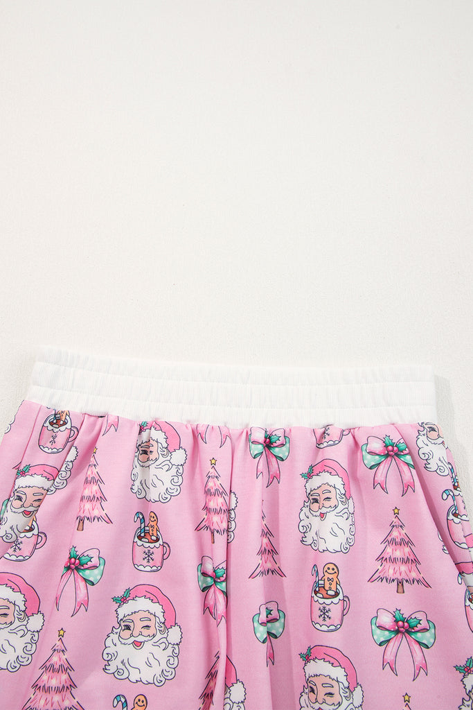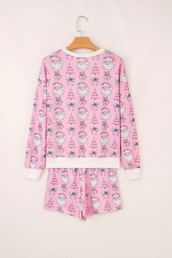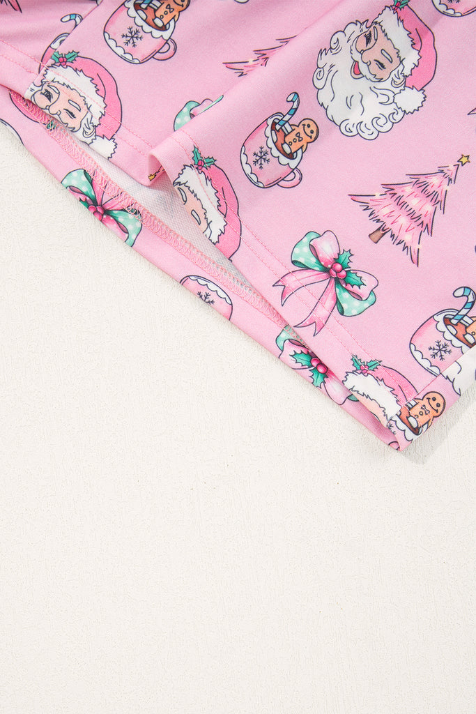 Pink Santa Claus Graphic Christmas Tree Pajama Set