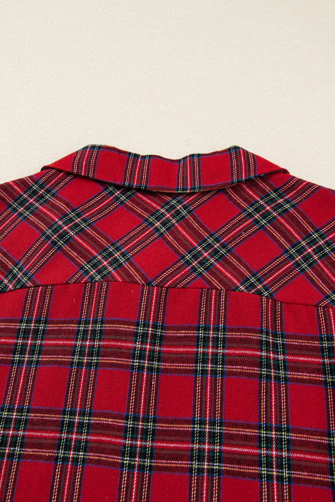 Red Plaid Contrast Color Christmas Holiday Long Sleeve Shirt and Shorts Pajama Set