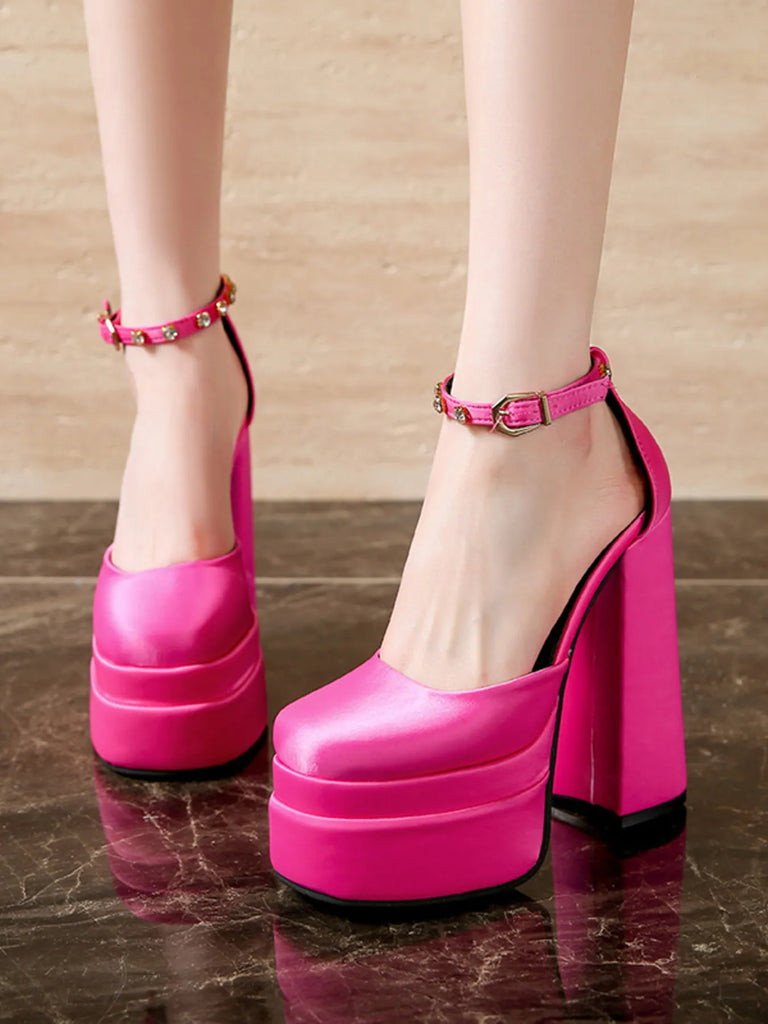 Platform High Heel Ankle Strap Pumps- 2 Colors