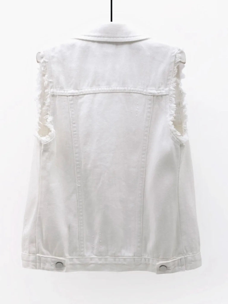 Button-Up Raw Hem Sleeveless Denim Vest A- 5 Colors