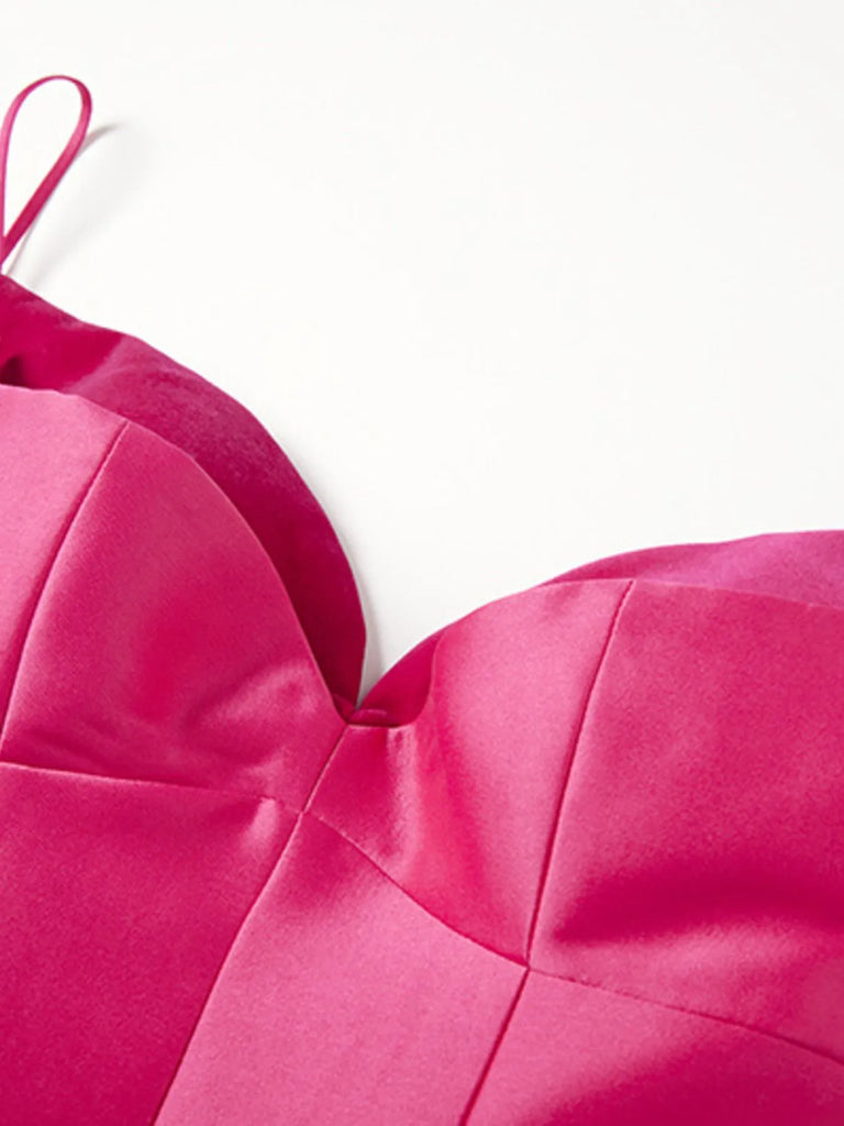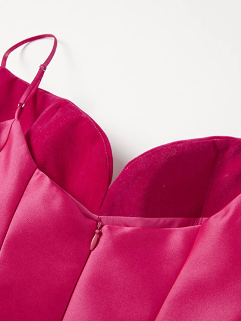 Sweetheart Satin Spaghetti Strap Midi Dress with Collar