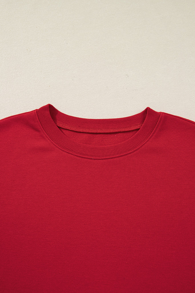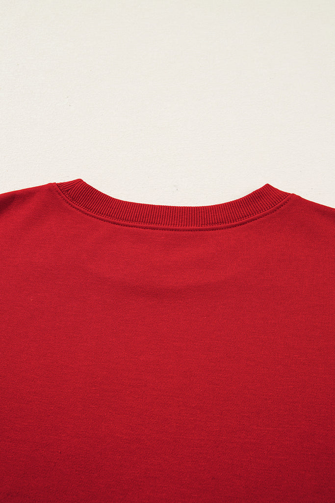 Fiery Red Varsity Striped Detail Plus Size Round Neck Sweatshirt