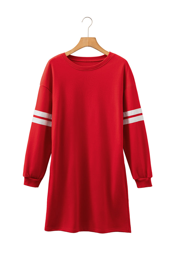 Tillandsia Purple Preppy Striped Sleeve Loose Mini Dress
