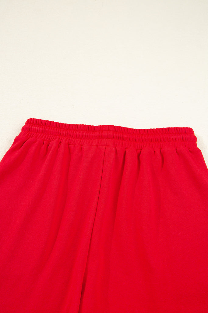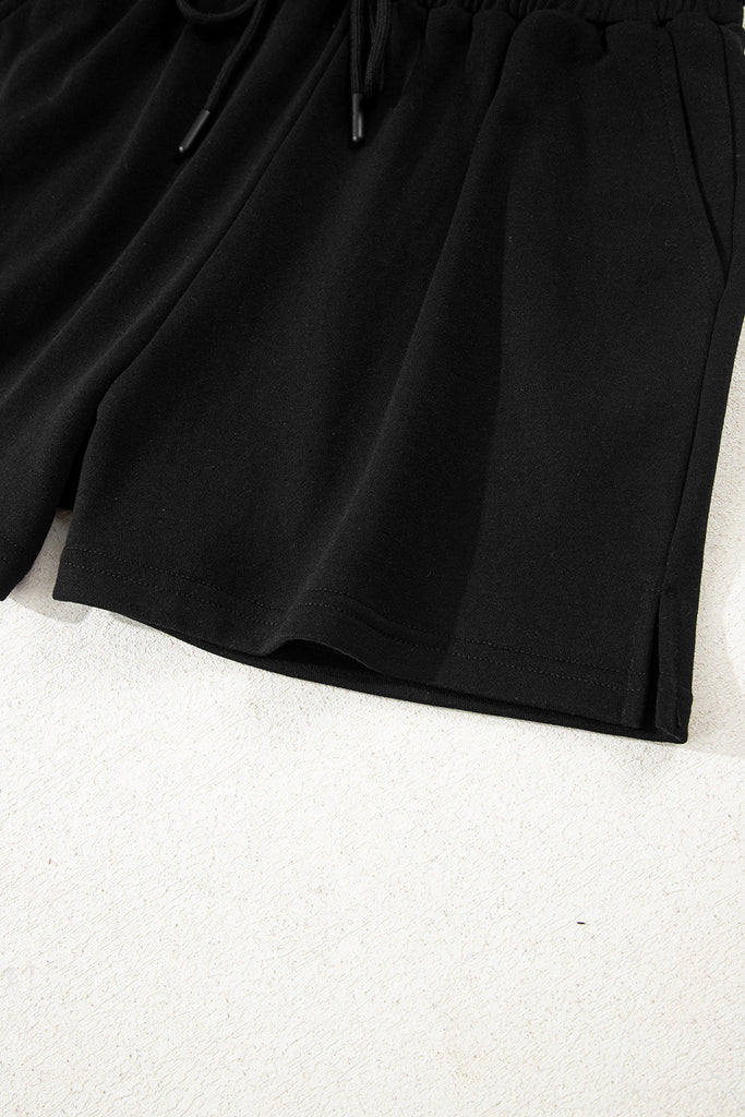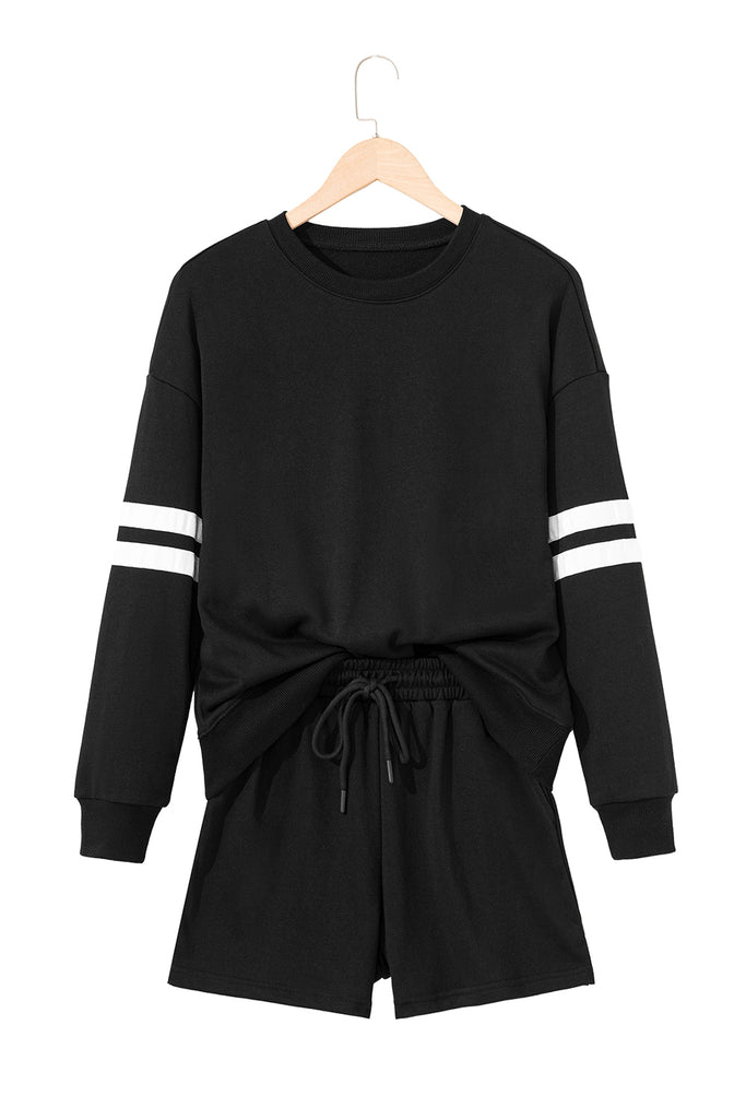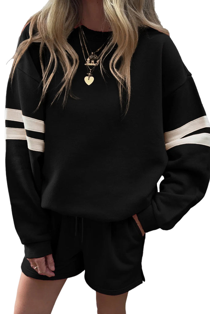 Varsity Striped Sleeve Drop Shoulder Sweatshirt and Shorts Set- 5 Colors
