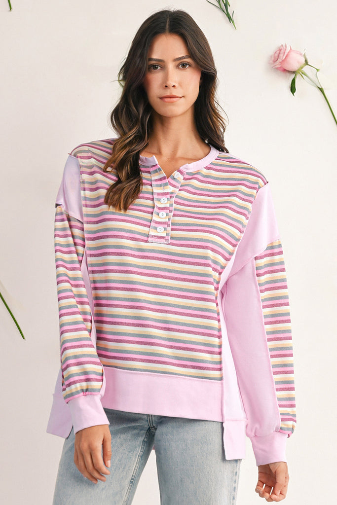 - The v-neck design adds a touch of sophistication, while the button details provide a unique twist to a classic sweatshirt silhouette.