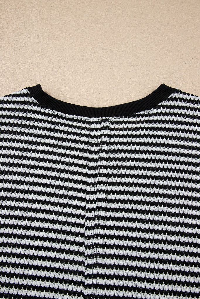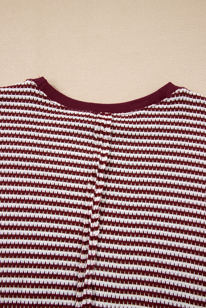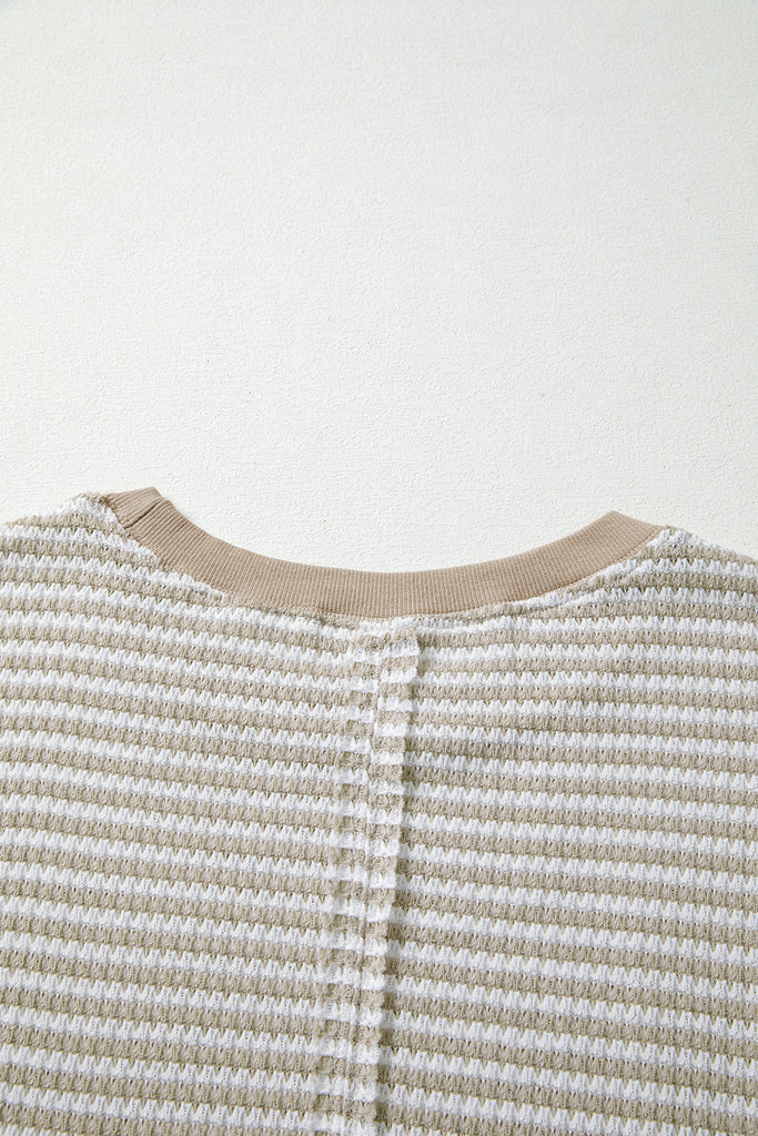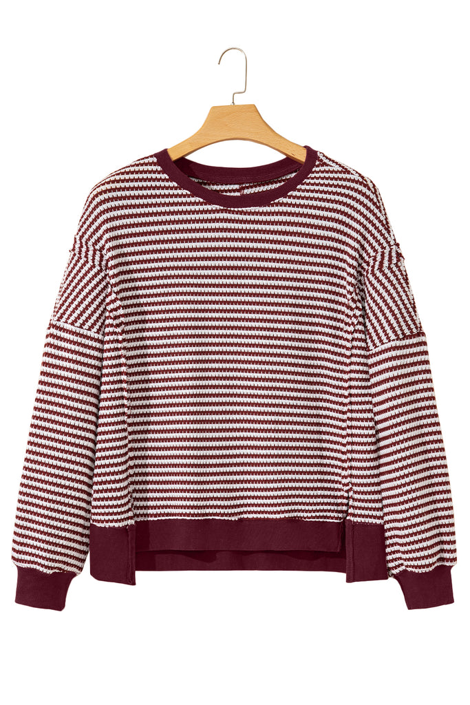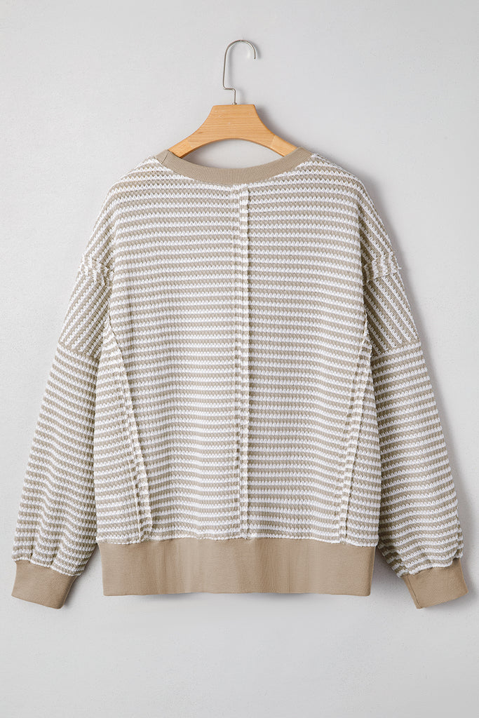Striped Ribbed Exposed Seam Long Sleeve Oversized Top- 3 Colors