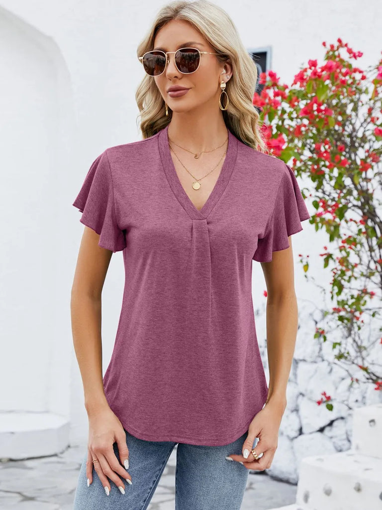 V-Neck Flutter Sleeve T-Shirt- 6 Colors