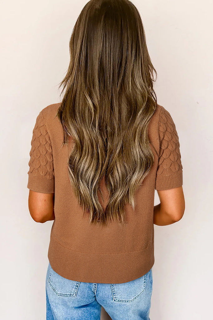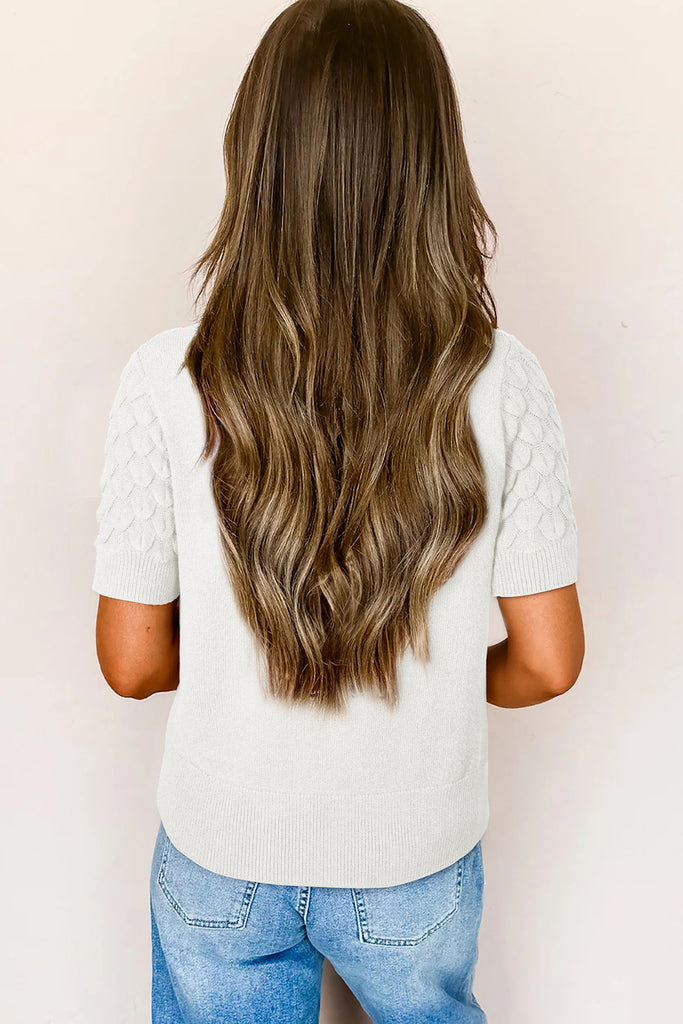 Fish Scale Textured Knit Crew Neck Short Sleeve Sweater- 2 Colors
