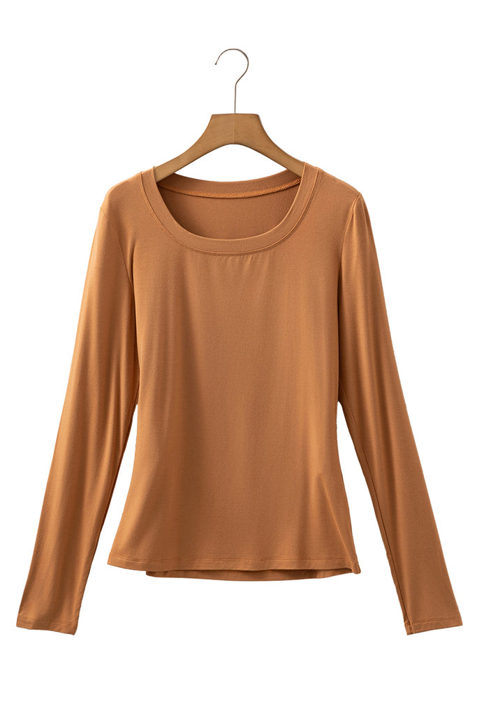Chestnut Solid Color Long Sleeve Slim Fit Top