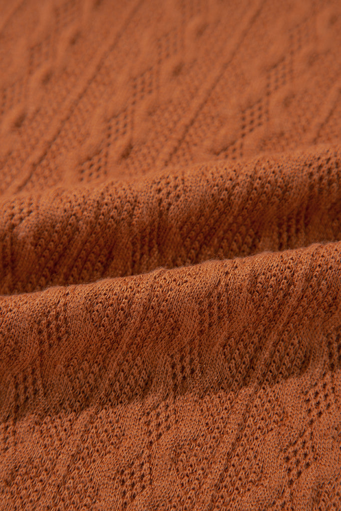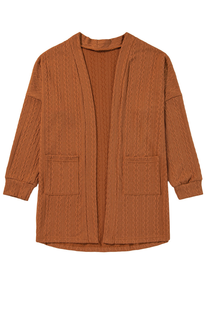 Chestnut Textured Knit Side Pockets Open Front Cardigan