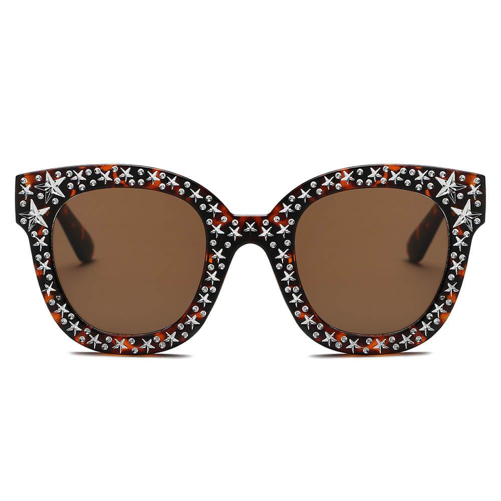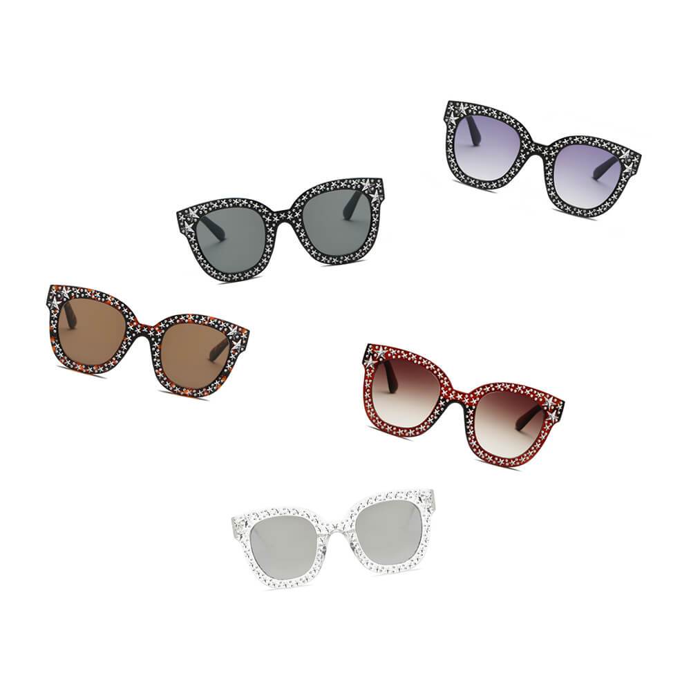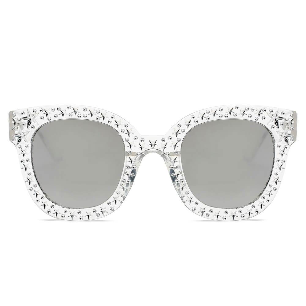 Women Fashion Glitter Round Cat Eye Sunglasses