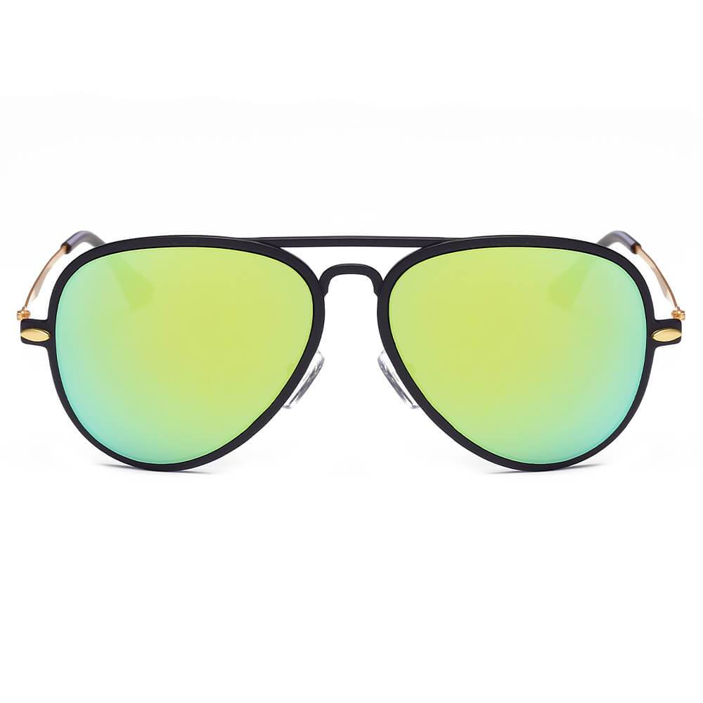DURHAM | Mirrored Aviator Fashion Sunglasses- Green & Black