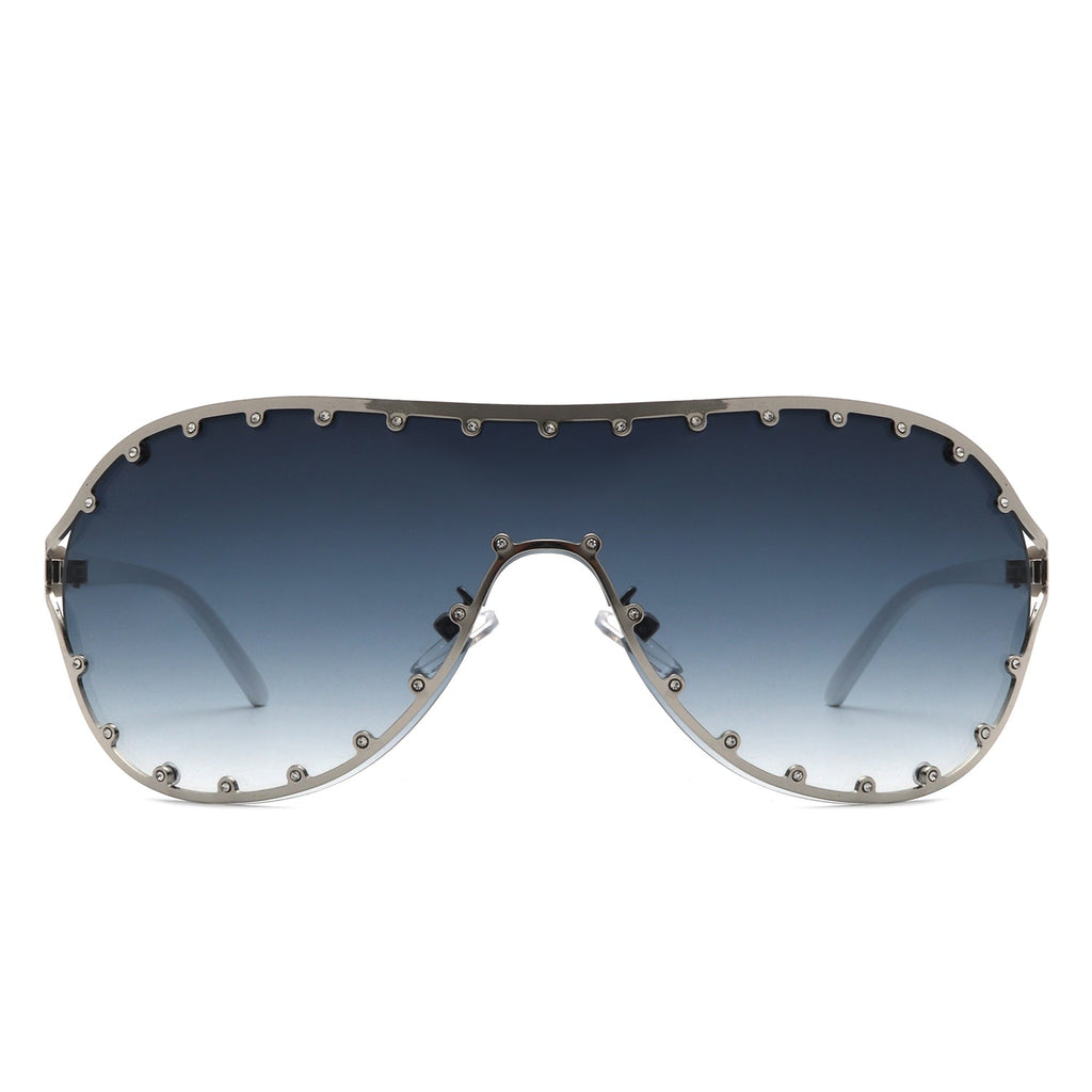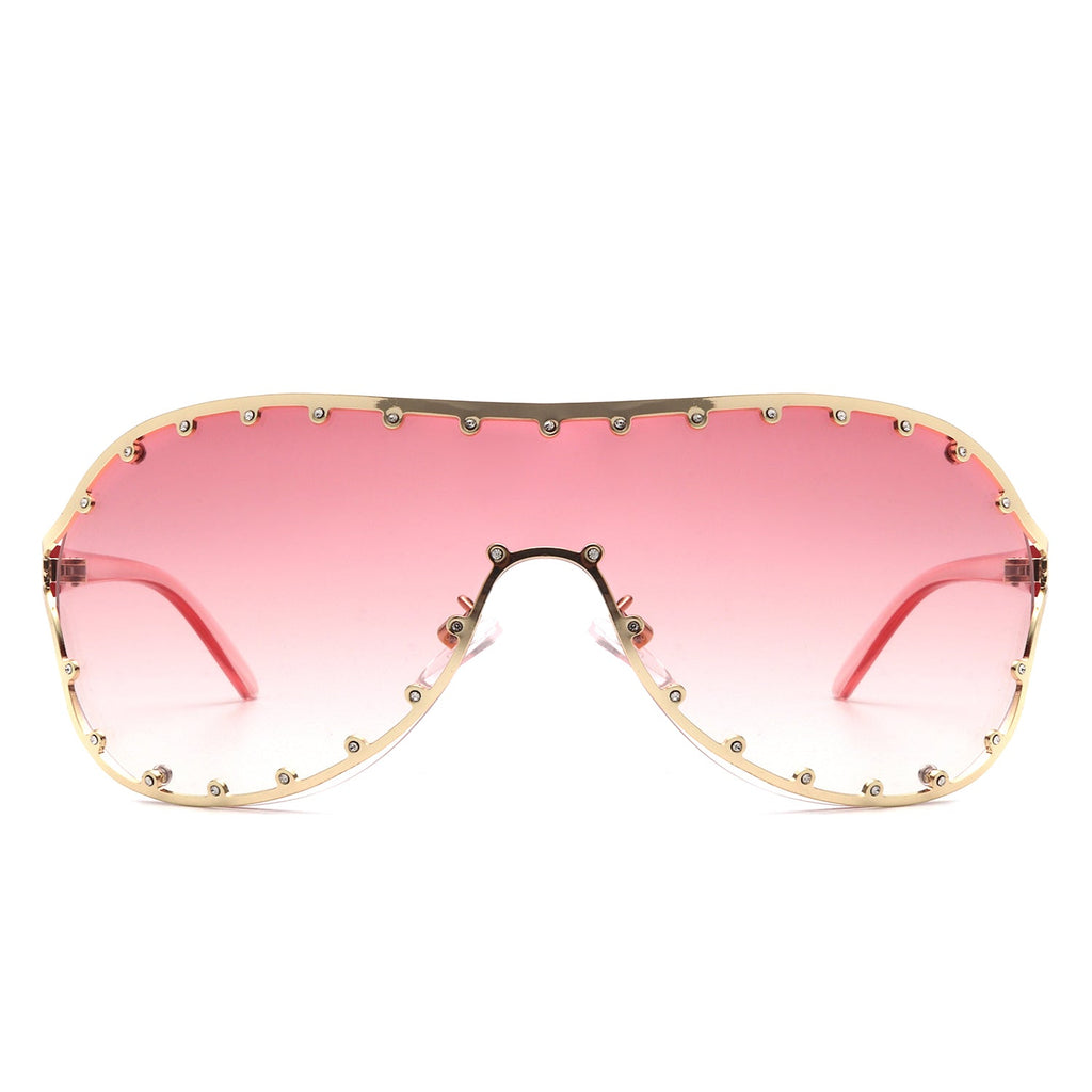 Evanesce - Oversized Aviator Rhinestone Design Women's Sunglasses