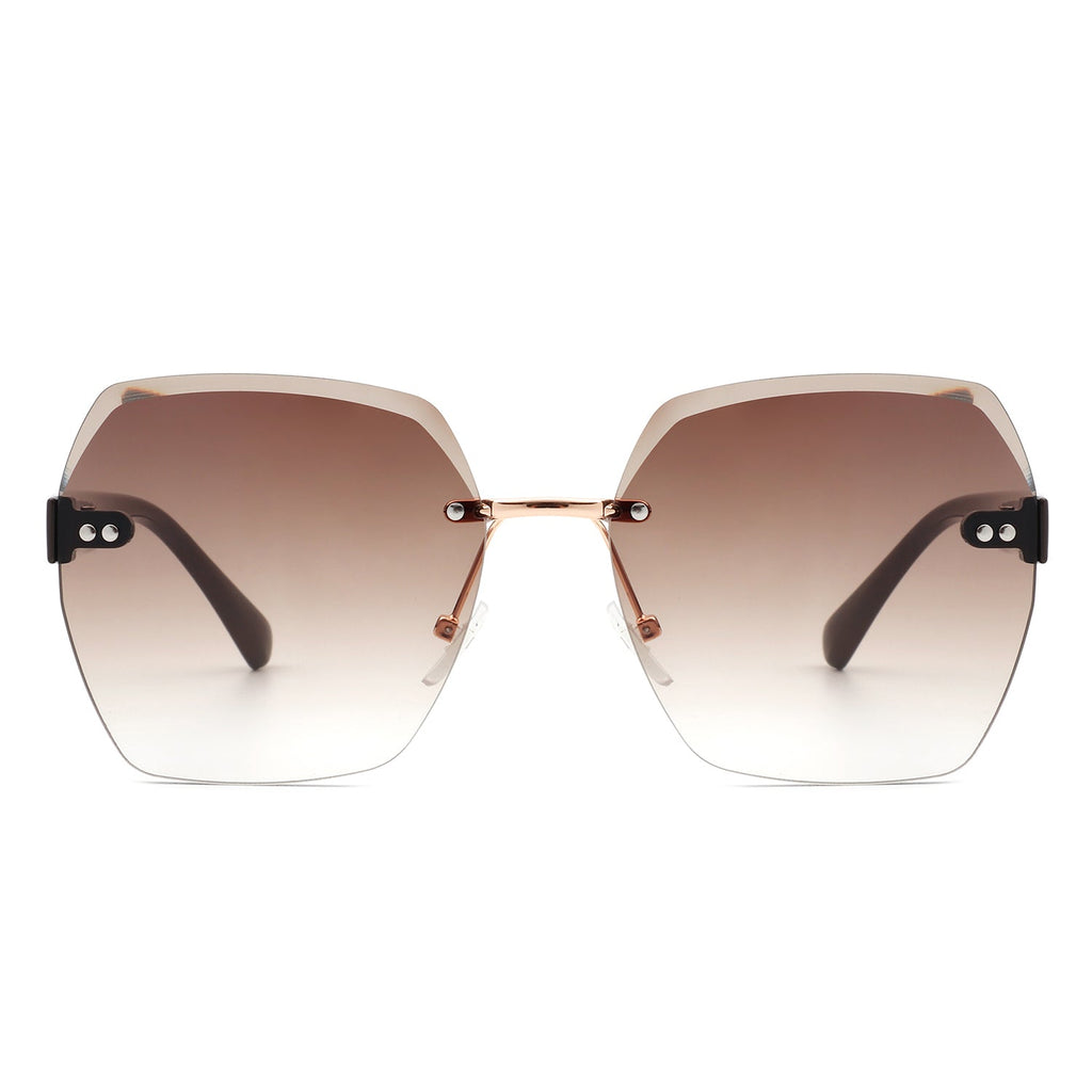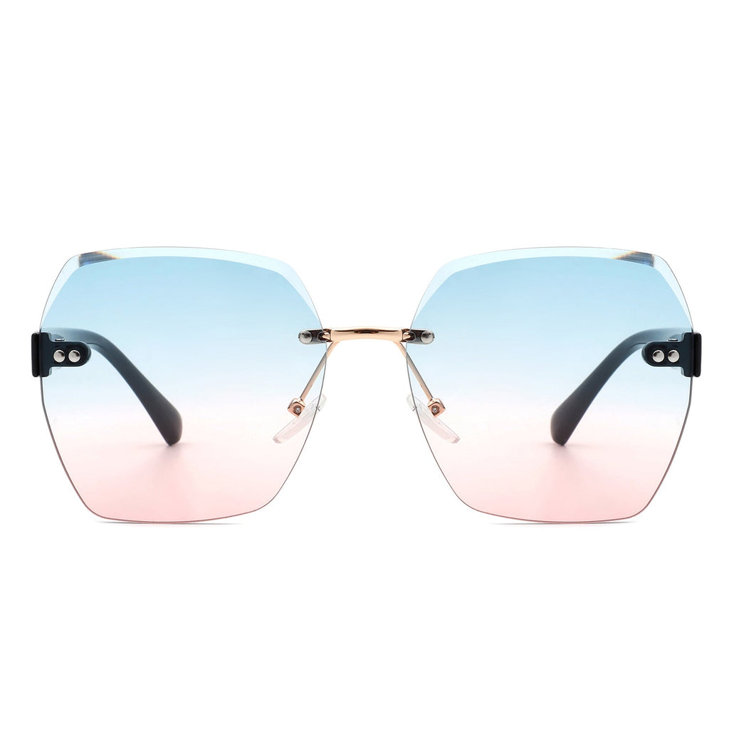 Ezernova - Oversize Square Geometric Rimless Tinted Fashion Sunglasses