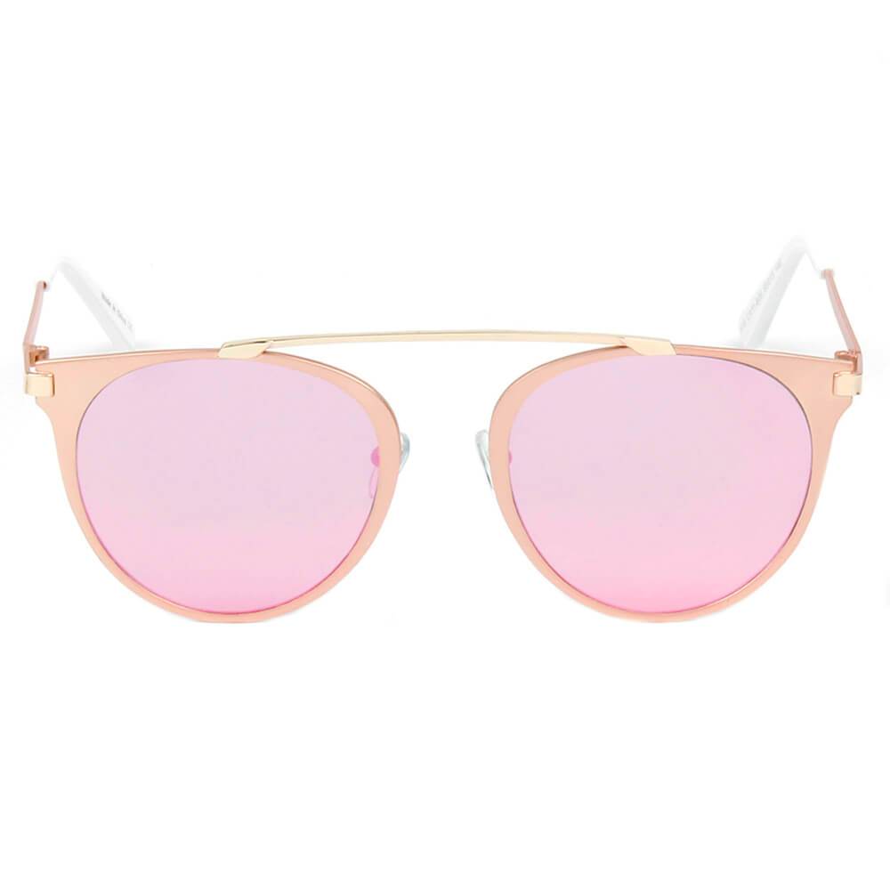 This sleek, minimalist design is the definition of modern posh. The subtle horned rims bound by a bright metallic brow-bar make for an effortlessly cool look. Features richly colored mirrored polycarbonate and scratch-resistant lens.