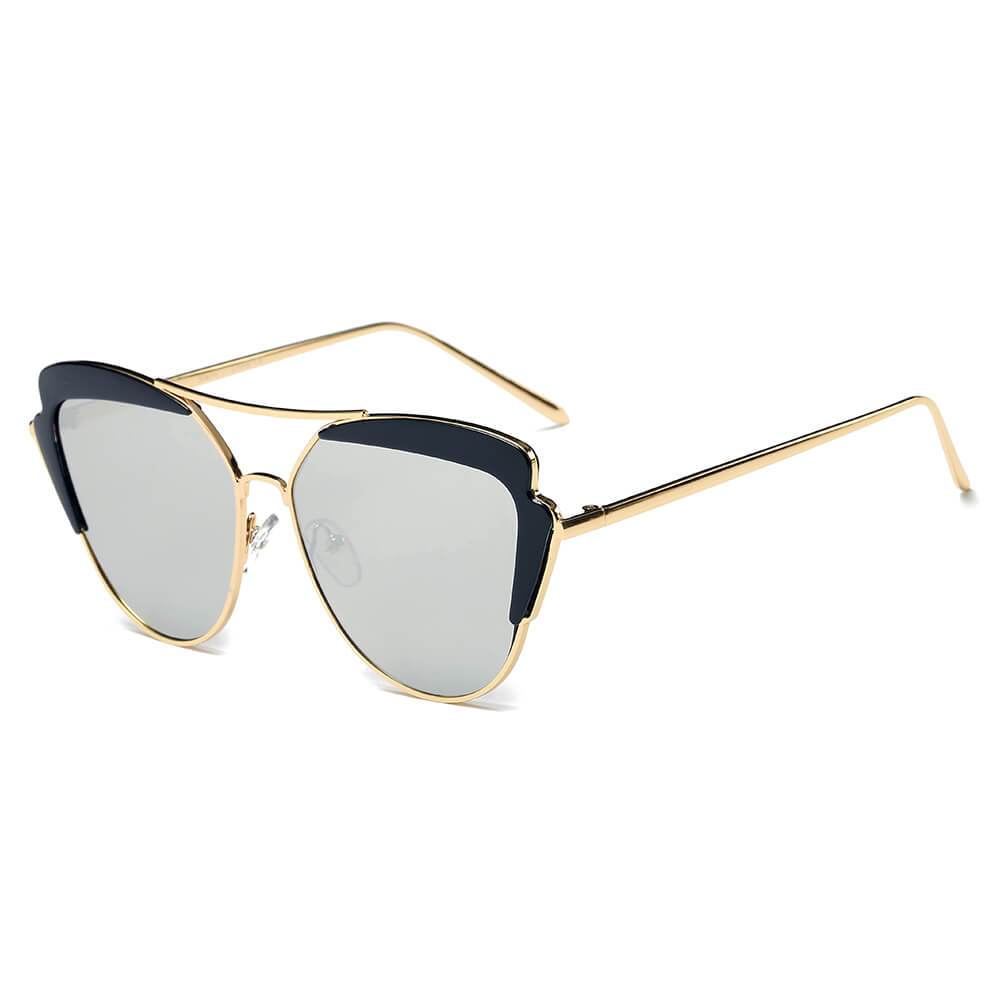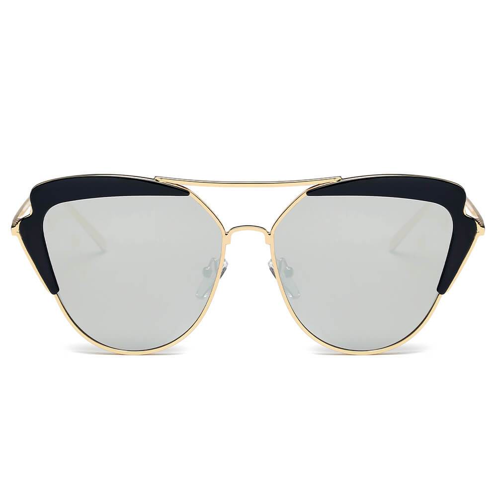 GALVESTON | Women's Brow Bar Mirrored Lens Cat Eye Sunglasses