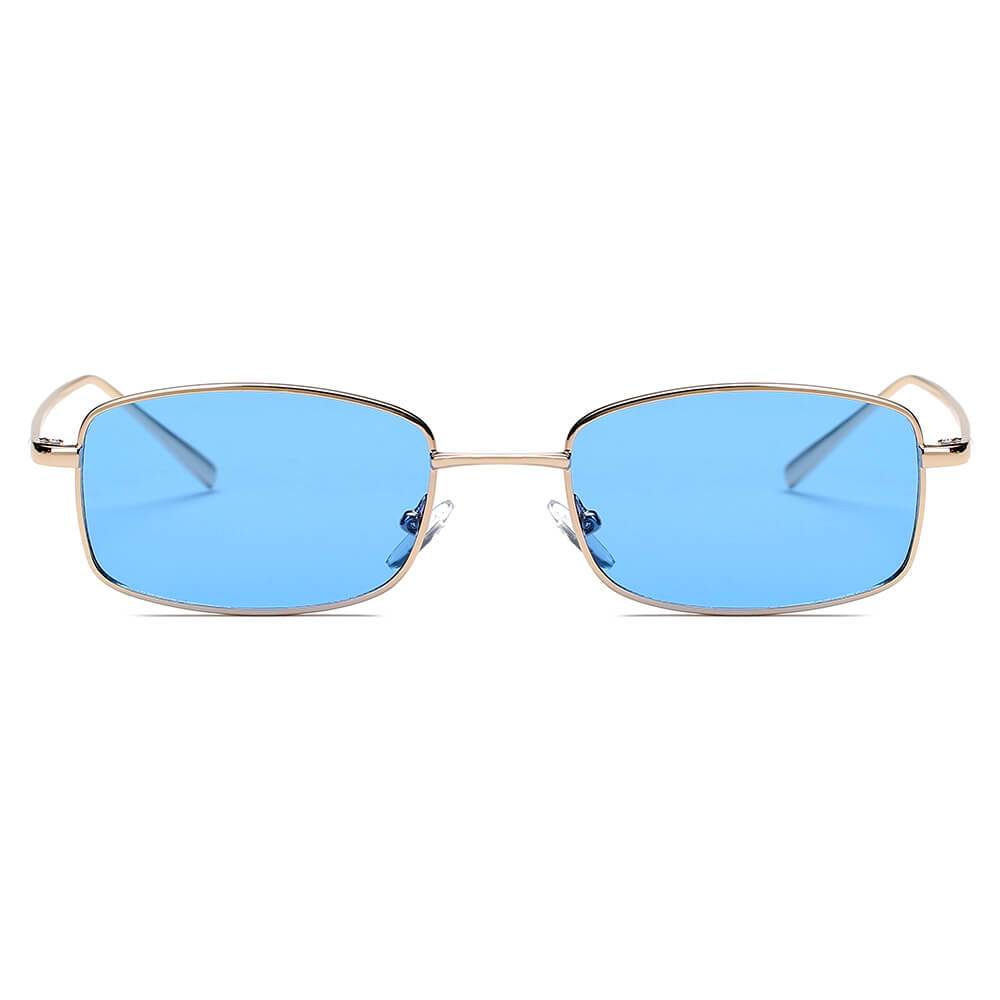 GARNER | Retro Vintage Slim Rectangle Sunglasses- Blue