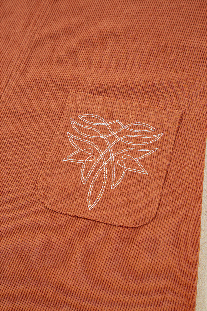 Gold Flame Corduroy Embroidered Patch Pocket Sleeveless Mini Dress