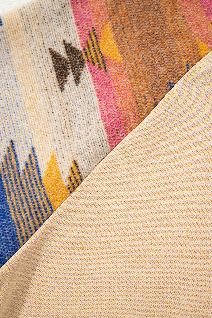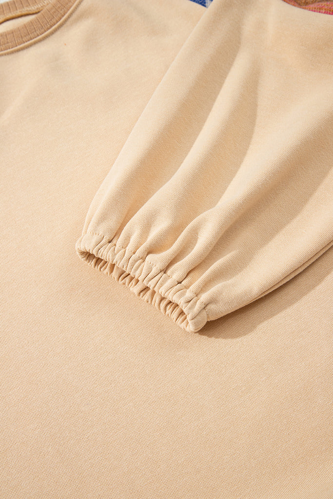 Light French Beige Geometric Patchwork Raglan Sleeve Pullover Sweatshirt