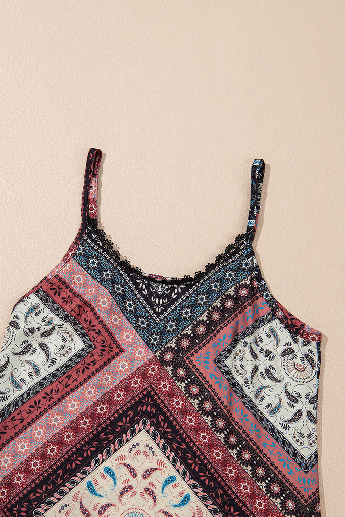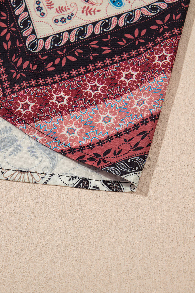 Red Geometric Paisley Print Sleeveless Mini Dress